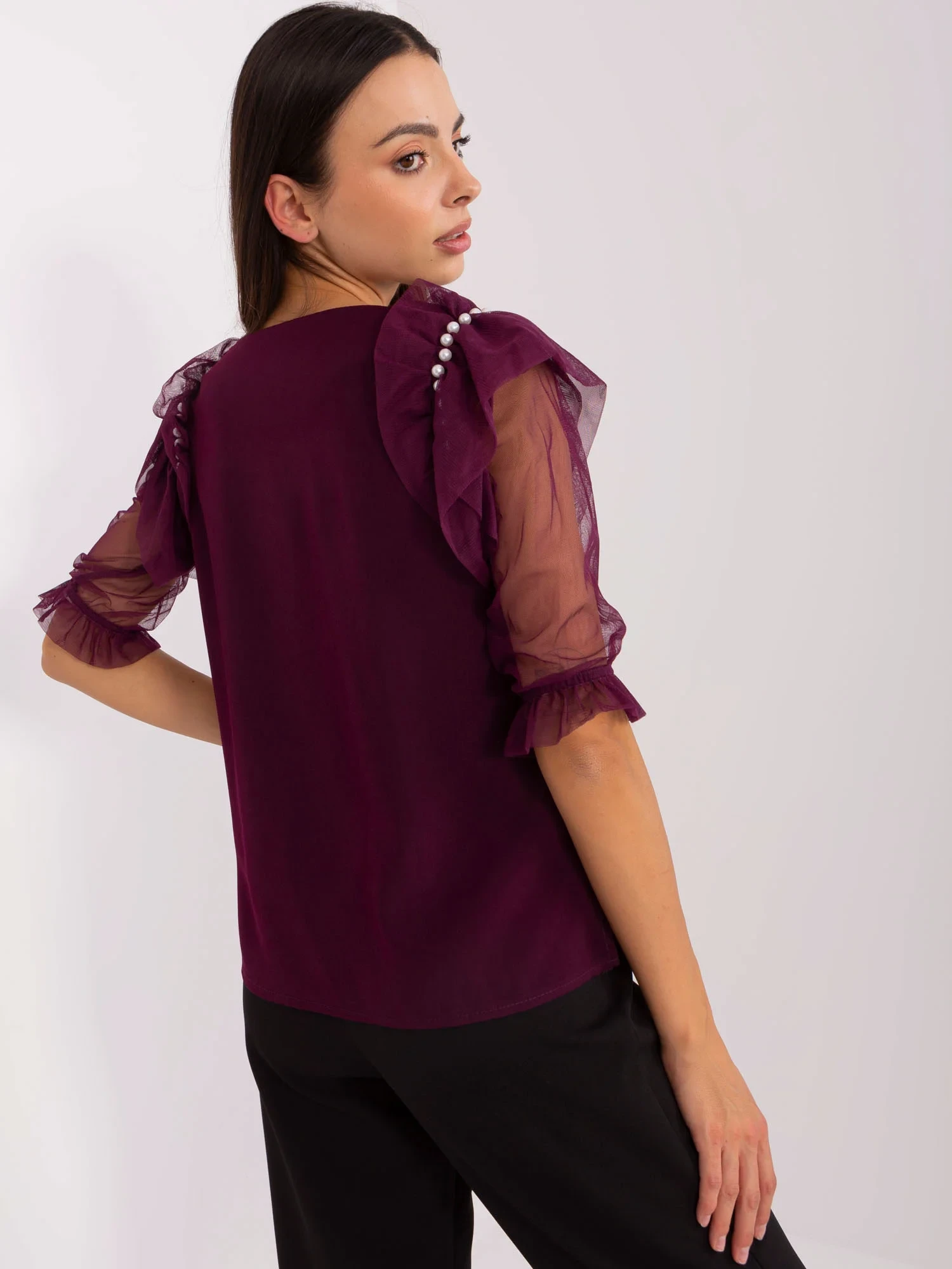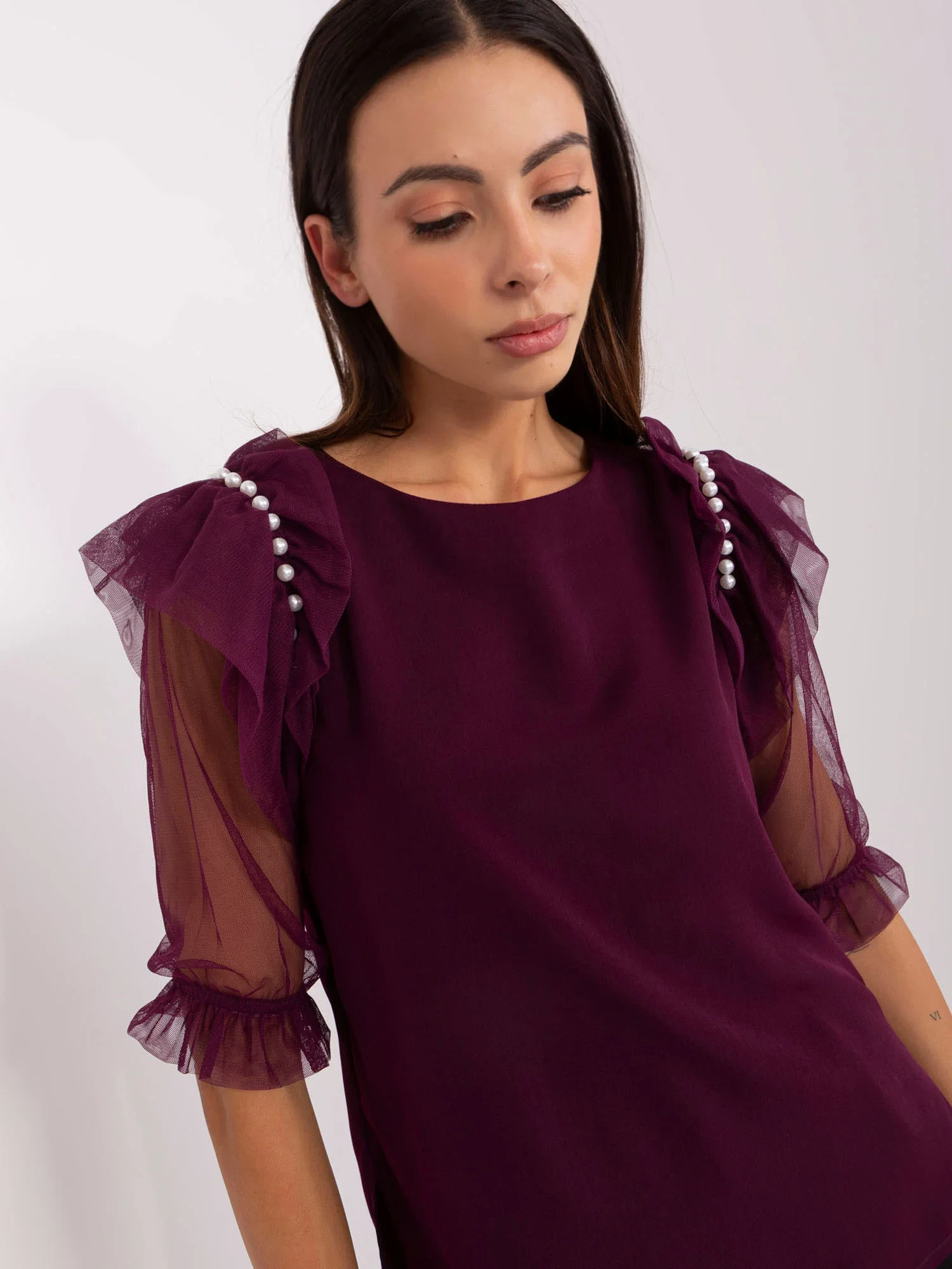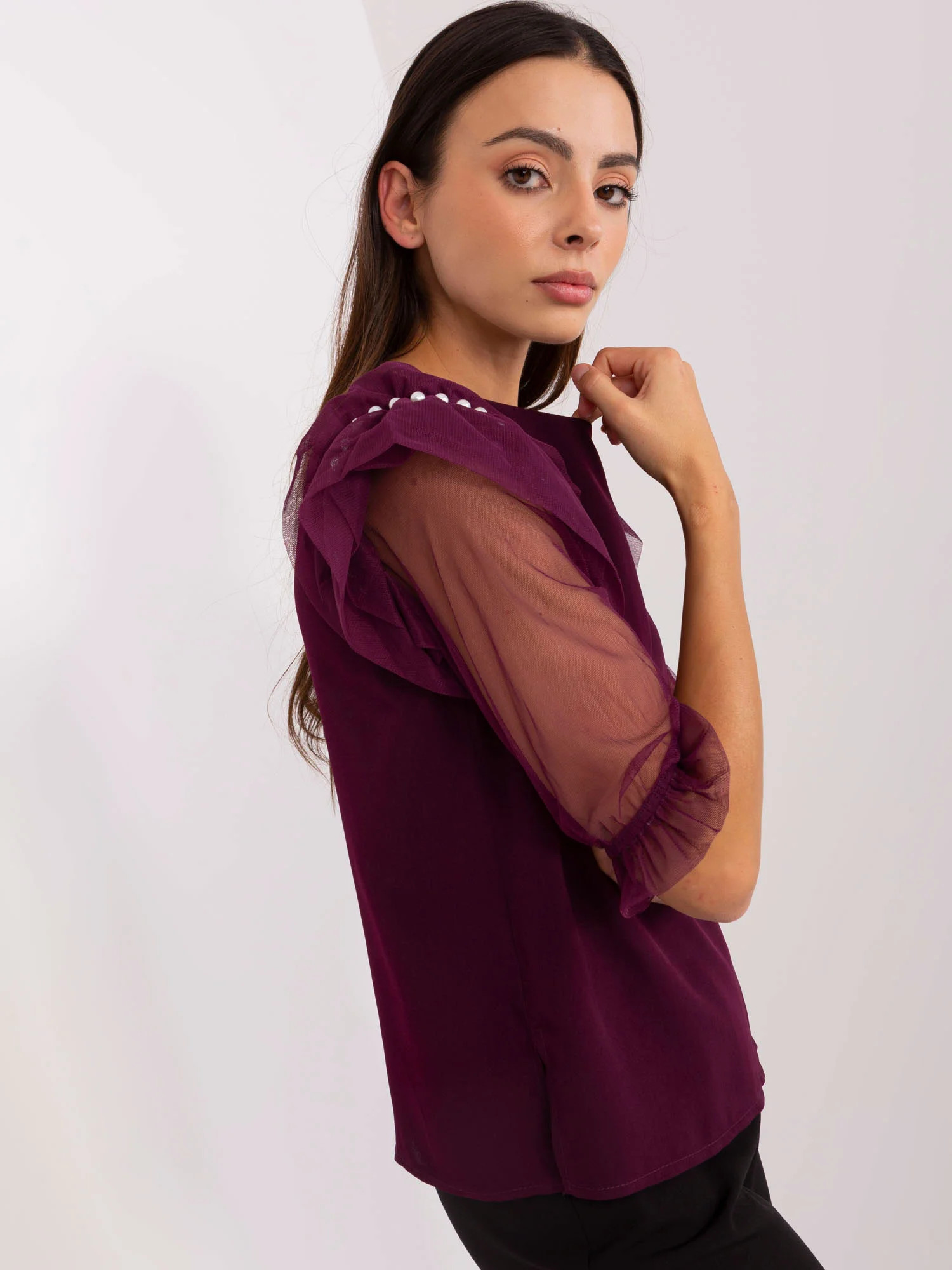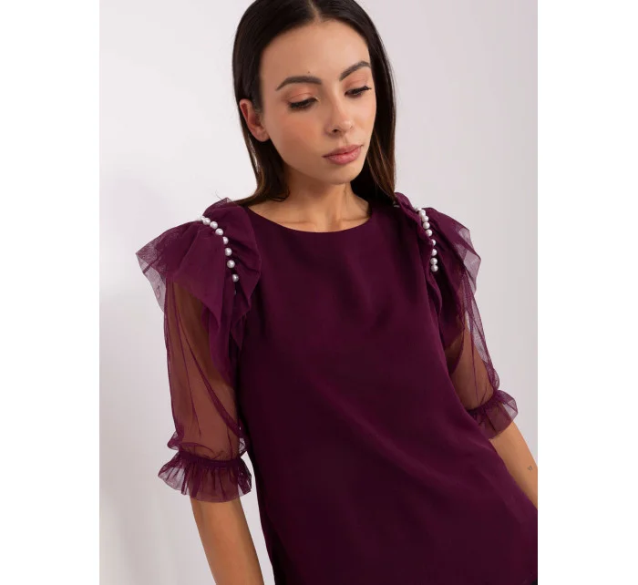 Tmavě fialová společenská halenka s rozparky.