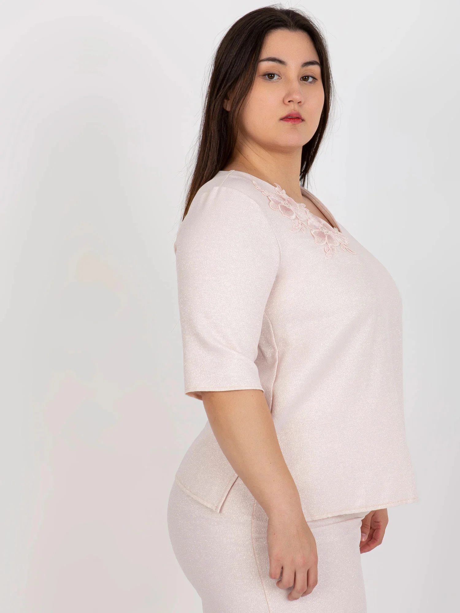 Modelka má na sobě velikost 46. Rozměry modelky: výška 167 cm, prsa 102 cm, pas 81 cm, boky 113 cm.