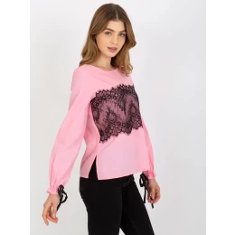 Růžová bavlněná společenská halenka s kravatou .