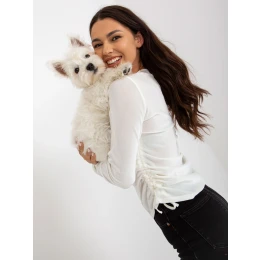 Dámská velurová halenka v barvě ecru s žebrovanými manžetami .