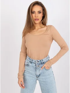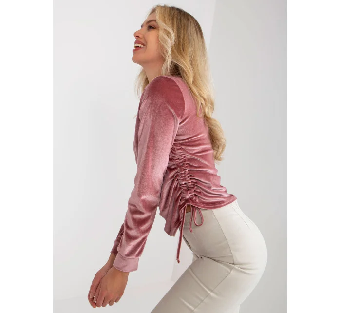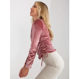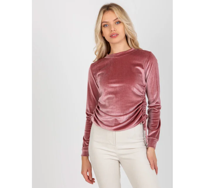 Špinavě růžová krátká velurová halenka s kulatým výstřihem .