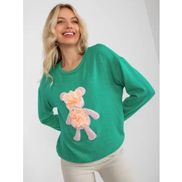 Tyrkysový dámský klasický svetr s 3D aplikací .