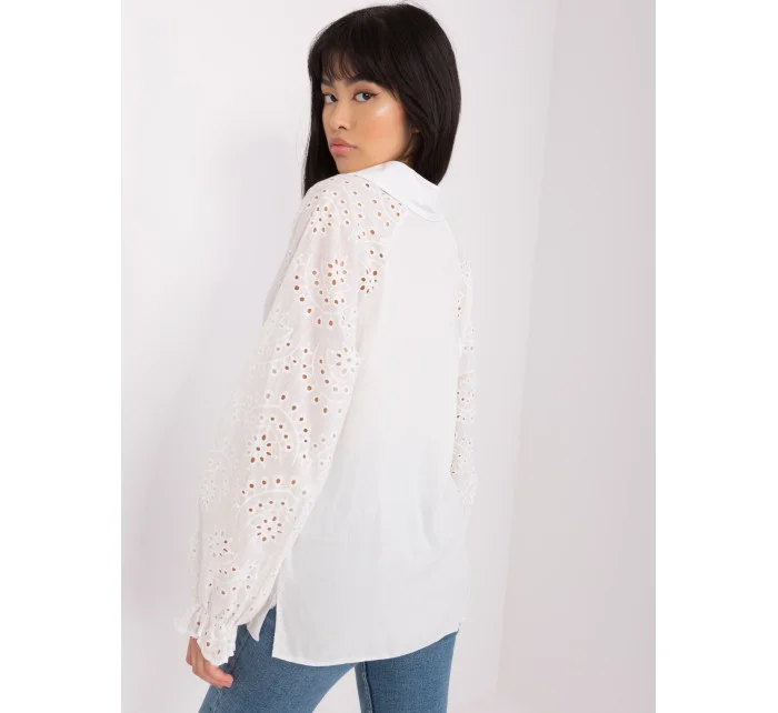 Dámská košilová halenka v barvě ecru s límečkem .