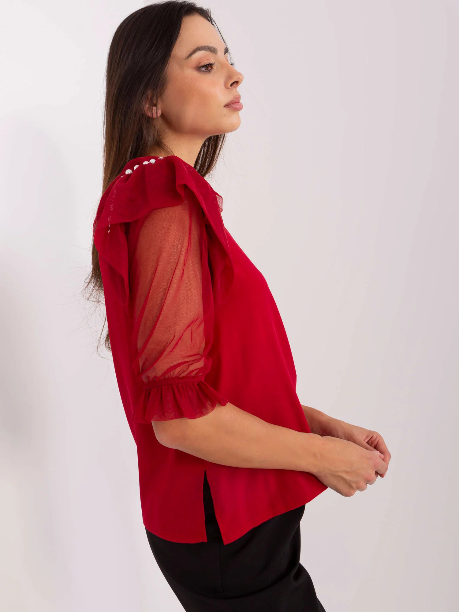 Rozměry halenky ve velikosti 36 měřené na plocho: šířka v podpaží - 50 cm, délka rukávu - 38 cm, celková délka - 59 cm.
