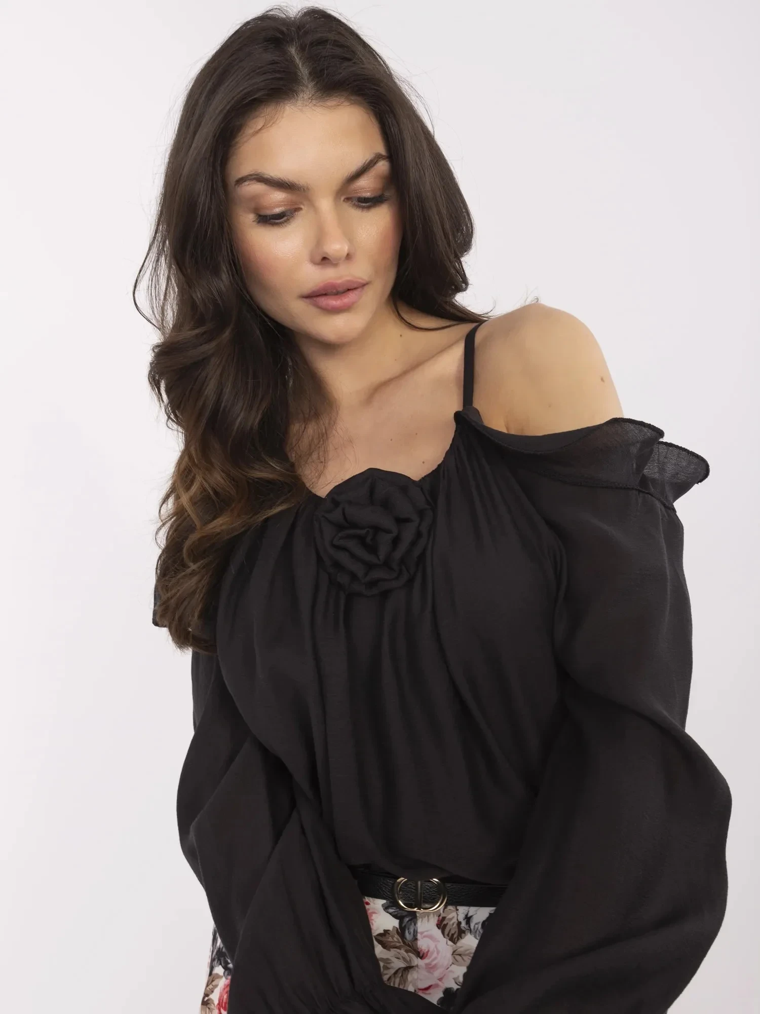 Modelka má na sobě jednu velikost. míry modelky: výška 173 cm, prsa 89 cm, pas 65 cm, boky 91 cm.