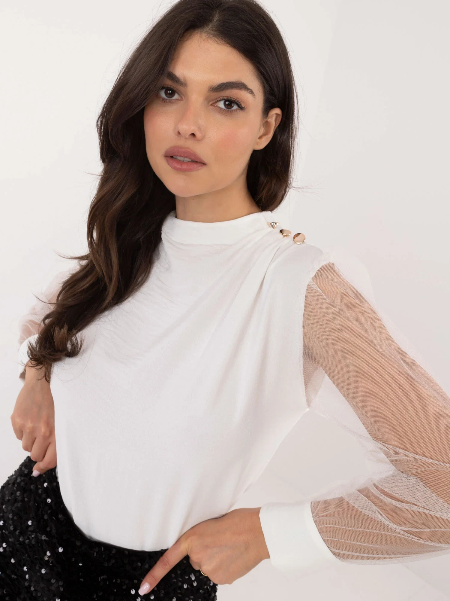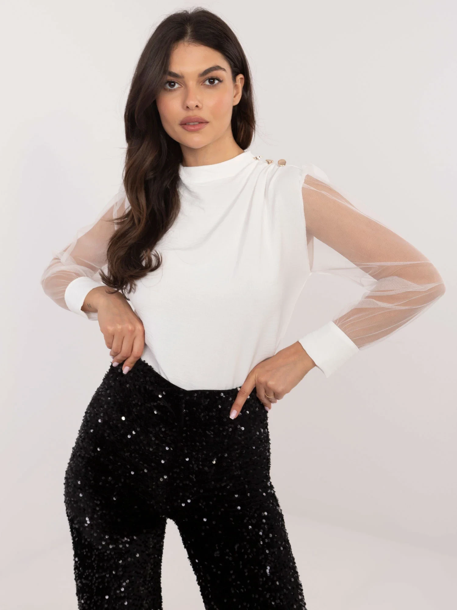 Rozměry halenky v jedné velikosti měřené na plocho: šířka v podpaží - 52 cm, celková délka - 64 cm, délka rukávu - 59 cm.