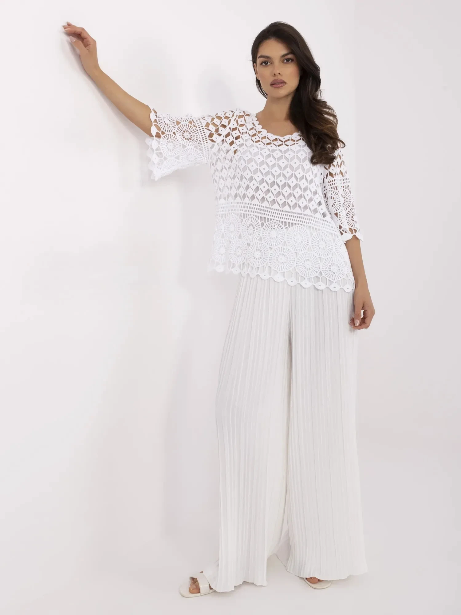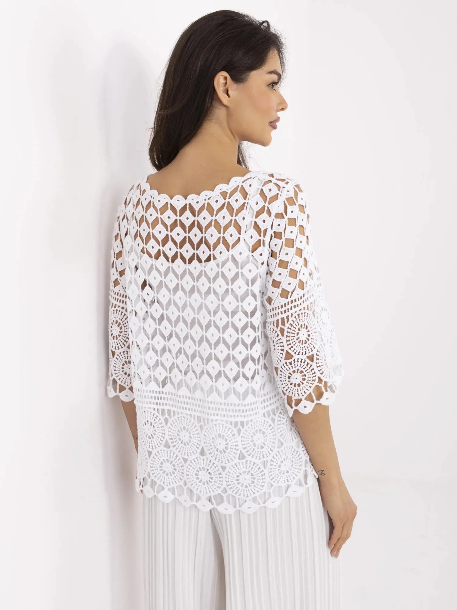 Rozměry halenky v jedné velikosti měřené na plocho: šířka v podpaží - 57 cm délka rukávu - 37 cm (od švu), celková délka - 62 cm, šířka v bocích - 62 cm.