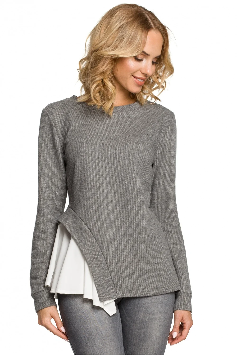Hledáte jedinečnou halenku? Tato zajímavě střižená halenka s asymetricky střiženými boky a ušitá z kombinace dvou materiálů, měkkého žebrovaného úpletu a vzdušné látky, jistě splní vaše očekávání. Halenka s dlouhými rukávy ideální pro mnoho příležitostí.