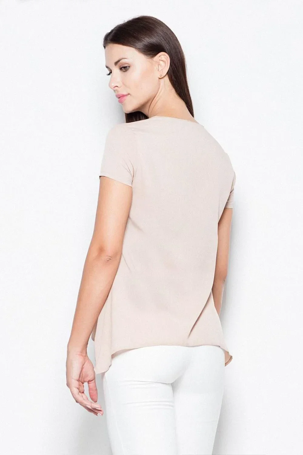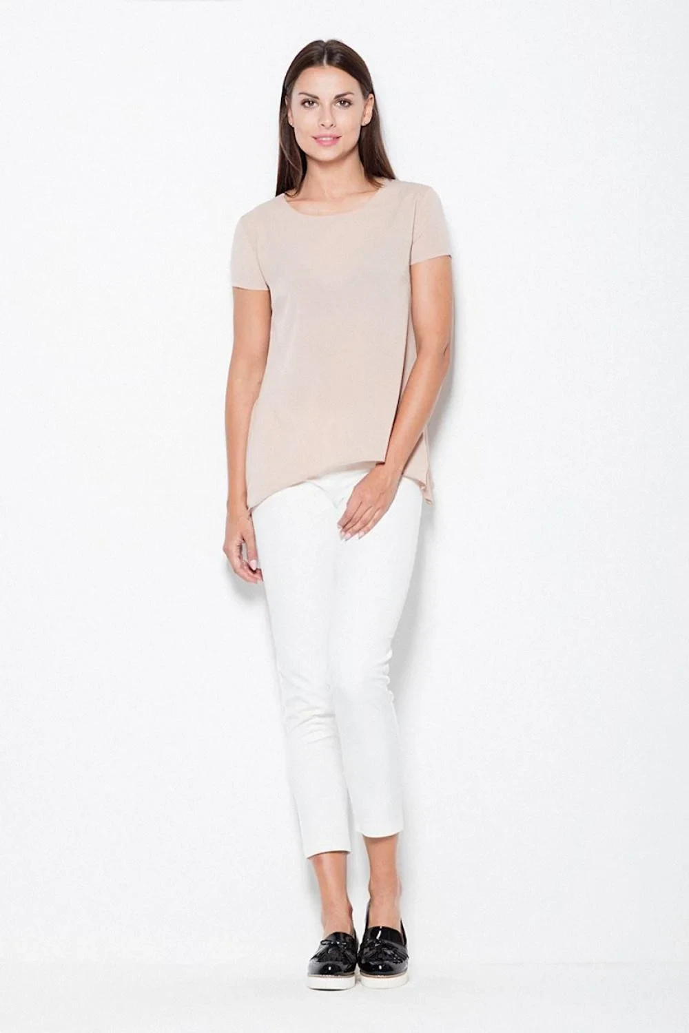Jednoduchá halenka s prodlouženými boky. Vyrobeno z lehkého a vzdušného materiálu. Ideálně se hodí k těsným kalhotám.