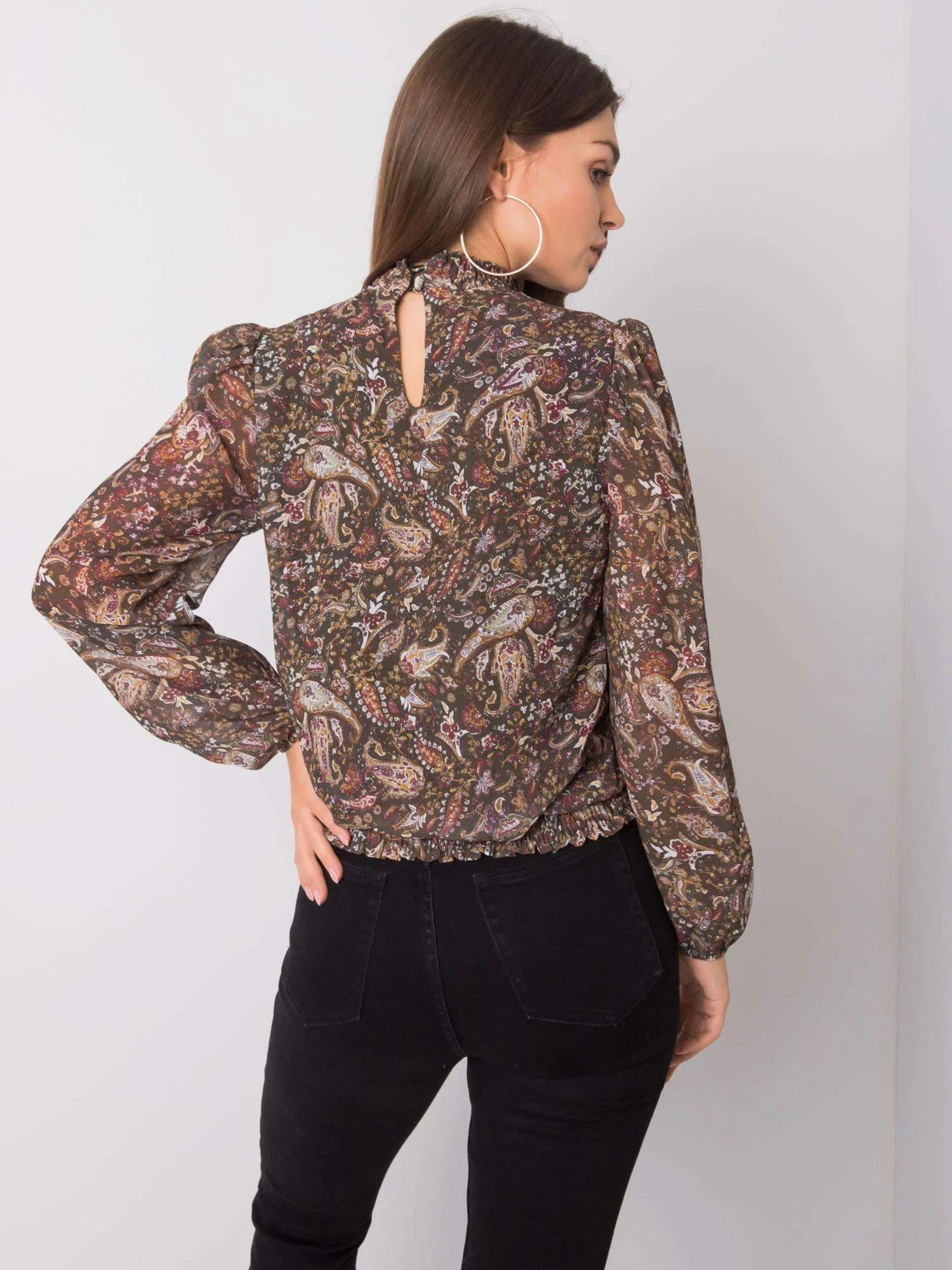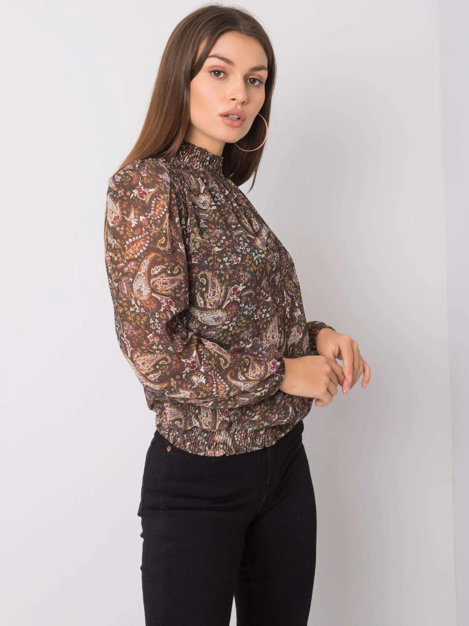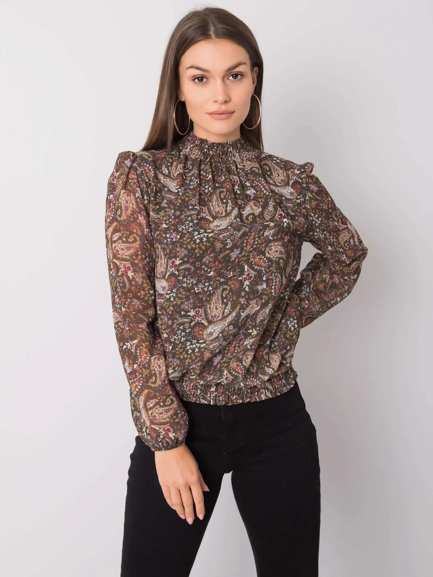 SUBLEVEL Tmavě zelená vzorovaná halenka.