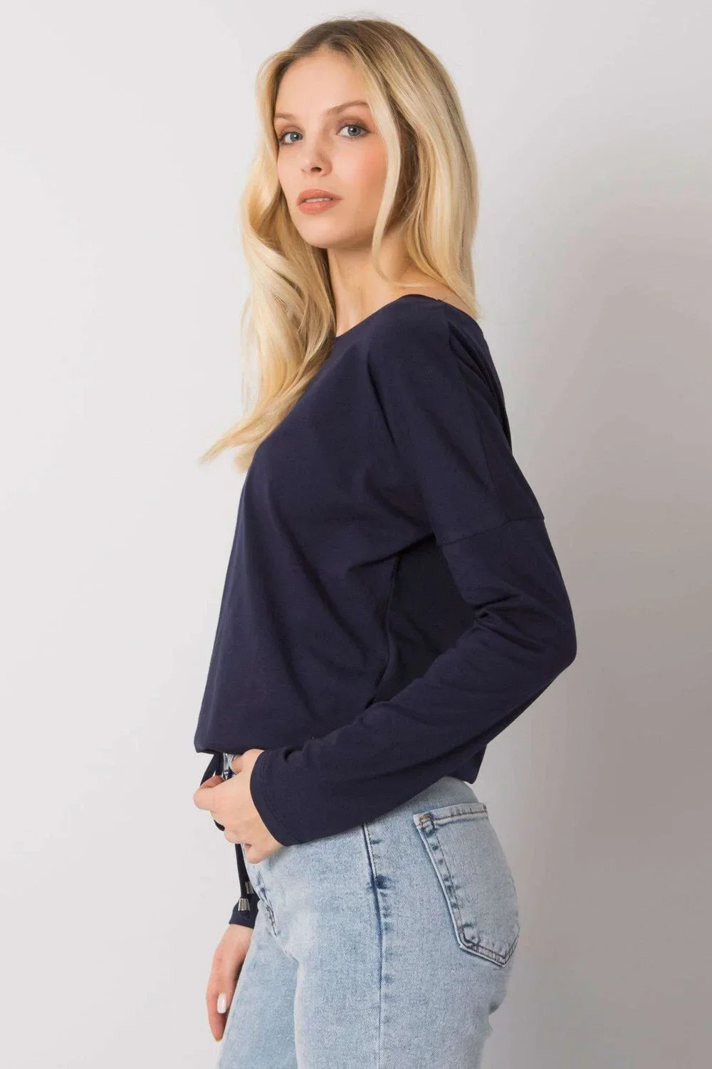 Halenka rovného střihu s dlouhými rukávy. Zavázat dole.