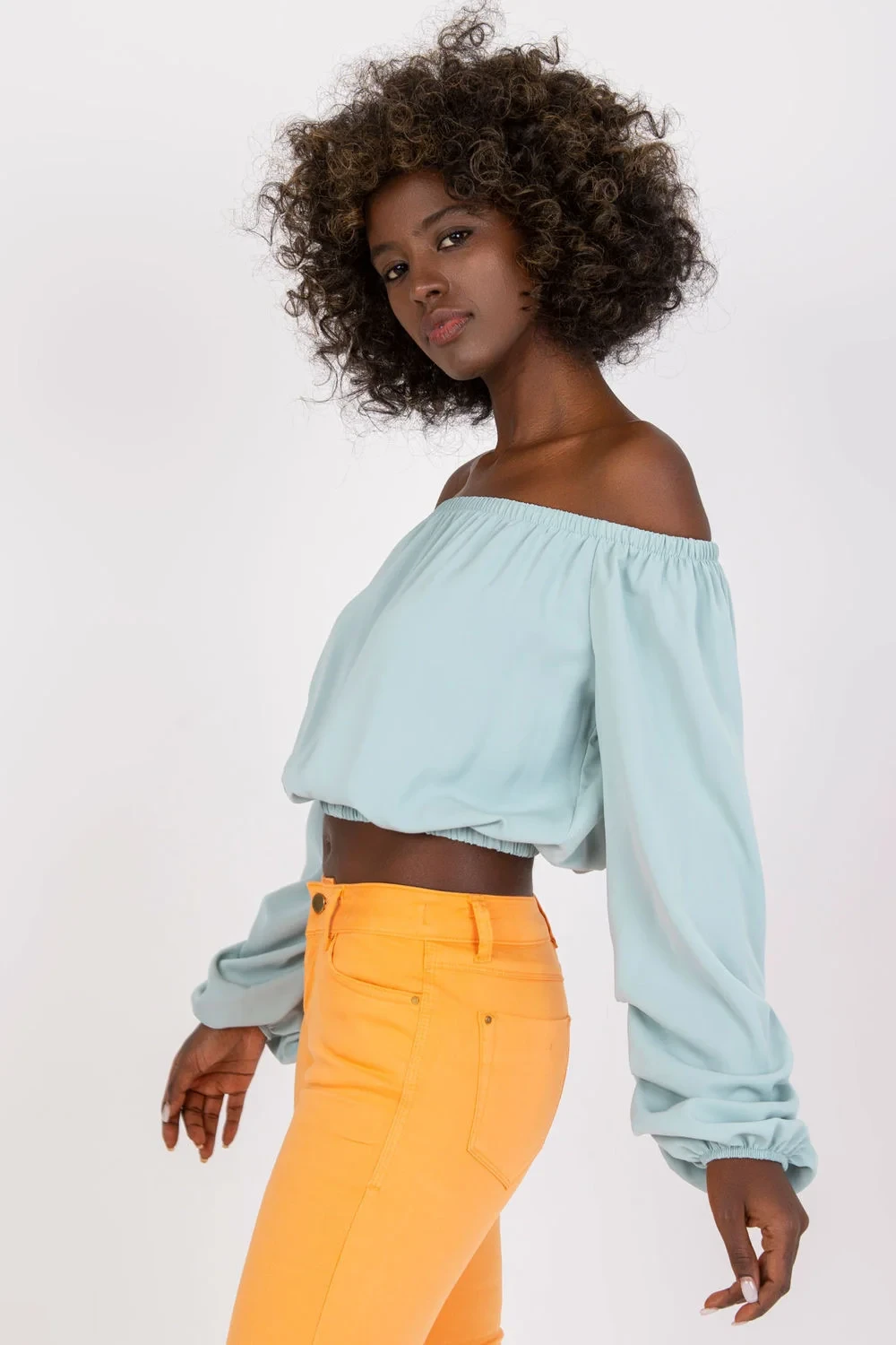 Halenka se střihem odhalujícím ramena a s dlouhými širokými rukávy. Ideální na léto.