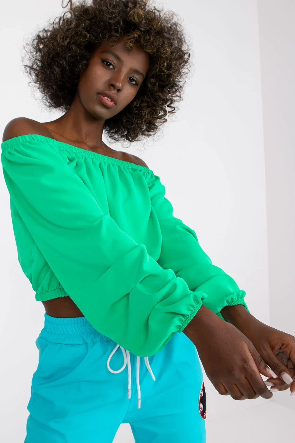 Halenka s dlouhými širokými rukávy a střihem odhalujícím ramena. Ideální na léto.