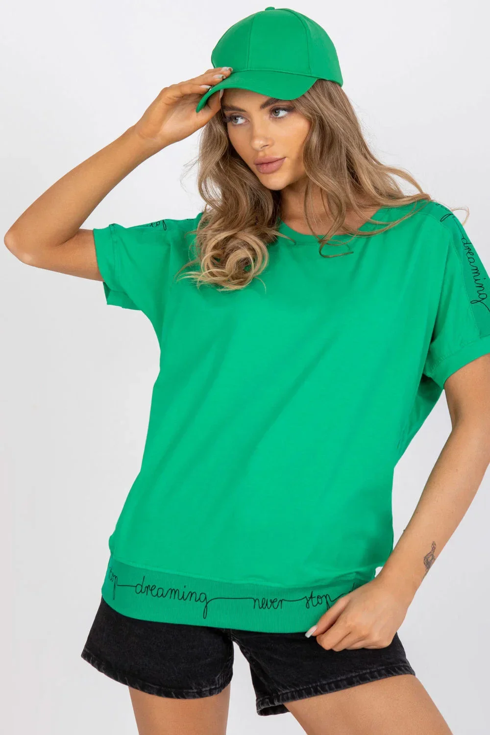 Halenka pro každodenní nošení s krátkým rukávem. Ozdobné nápisy na ramenou a ve spodní části.