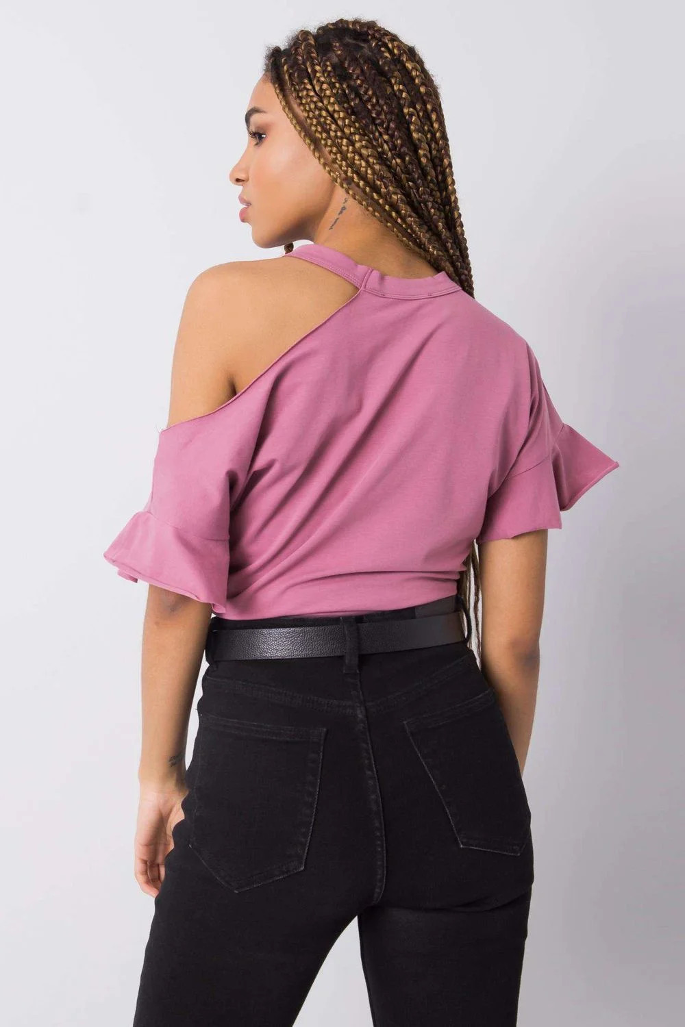 Halenka neobvyklého střihu s krátkými rukávy. Řez odhaluje rameno.