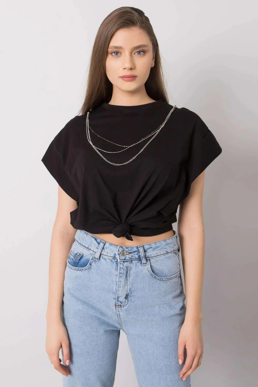 Volná halenka s krátkými rukávy. Dodává se s odnímatelným řetízkem.