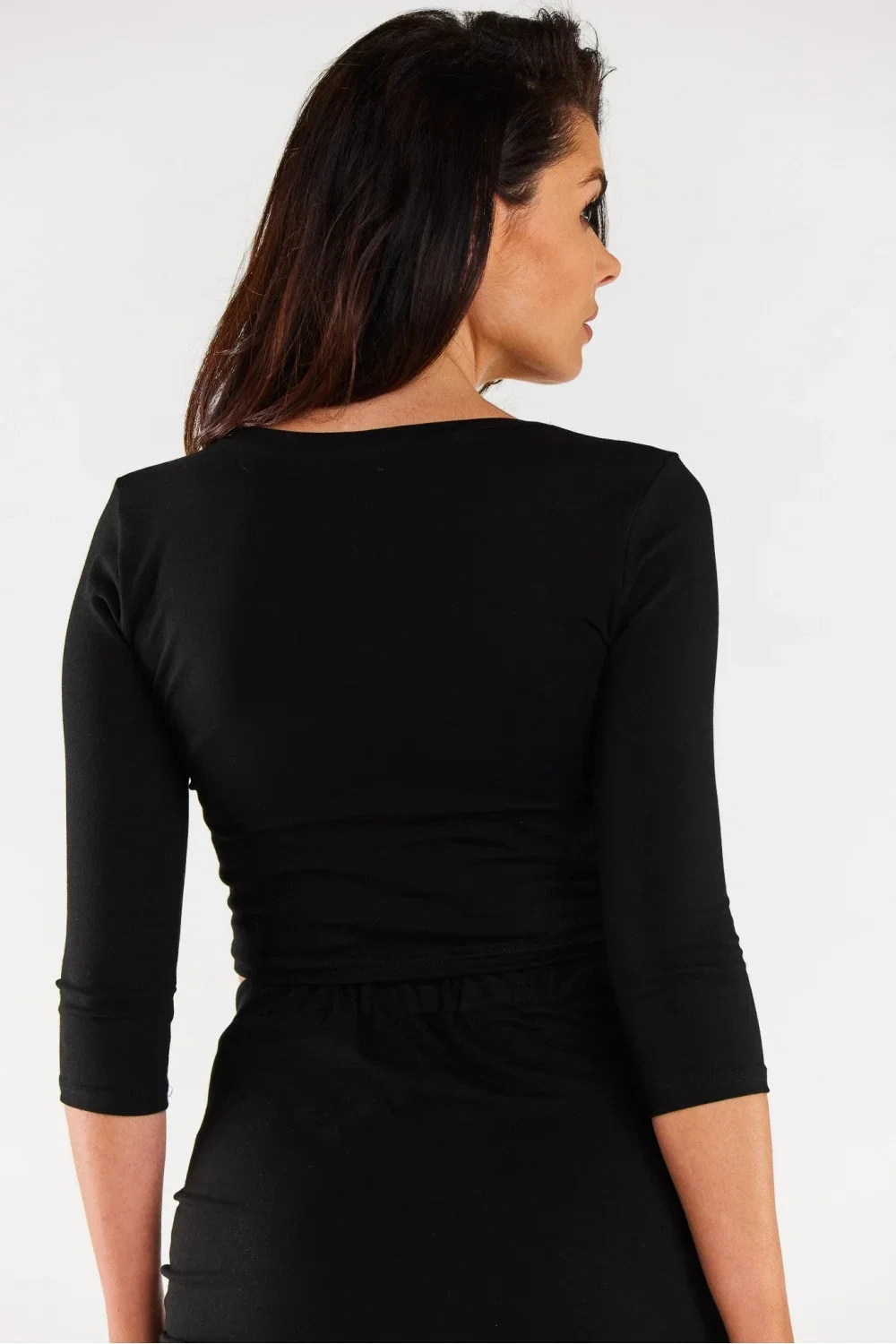 Crop top. Halenka s 3/4 rukávy a srdíčkovým výstřihem. Halenku lze stáhnout šňůrkami a odhalit tak bříško. Navrženo a ušito v Polsku.