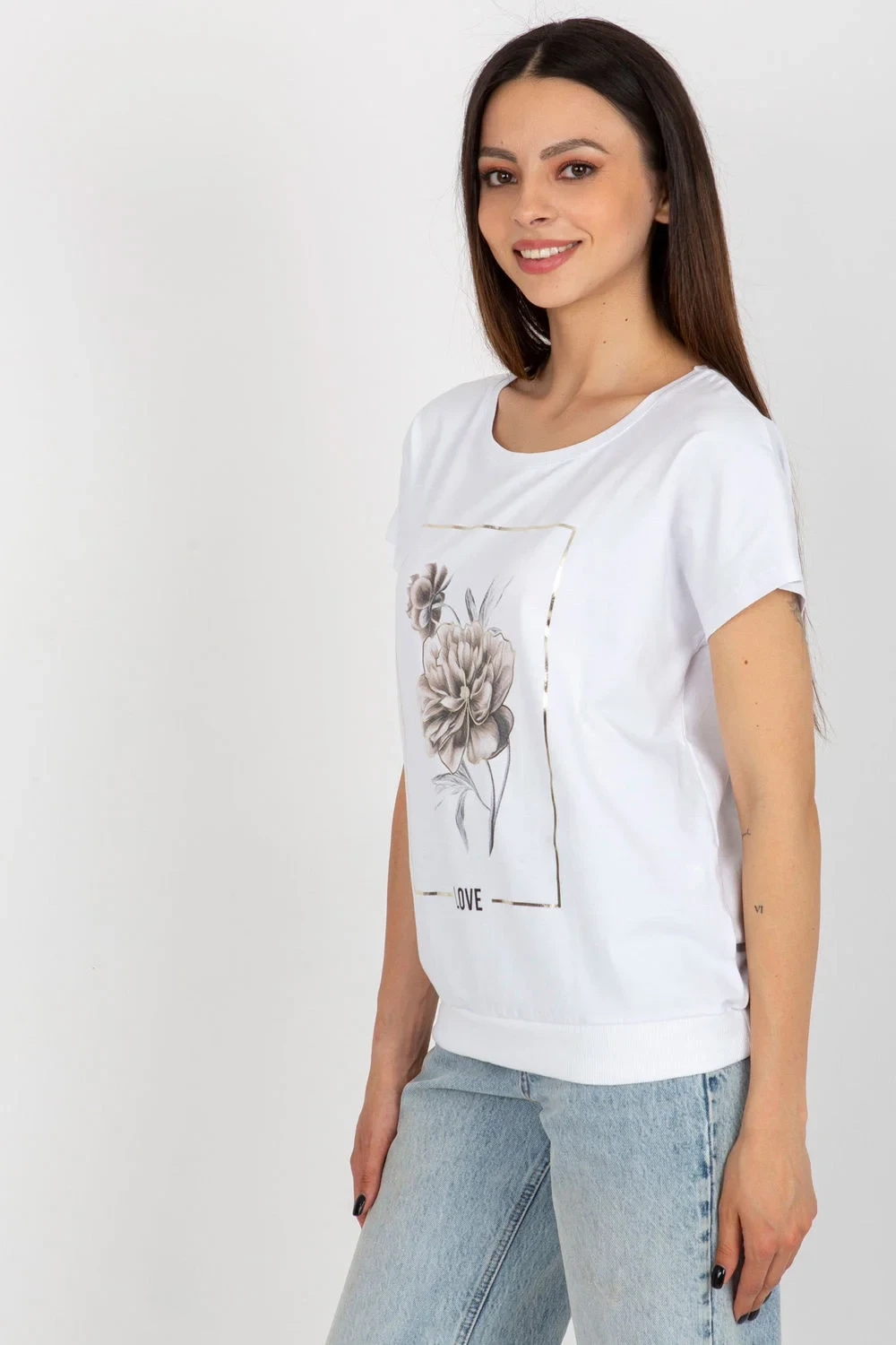 Bavlněná halenka s krátkými rukávy a kulatým výstřihem. Dekorativní potisk na přední straně.