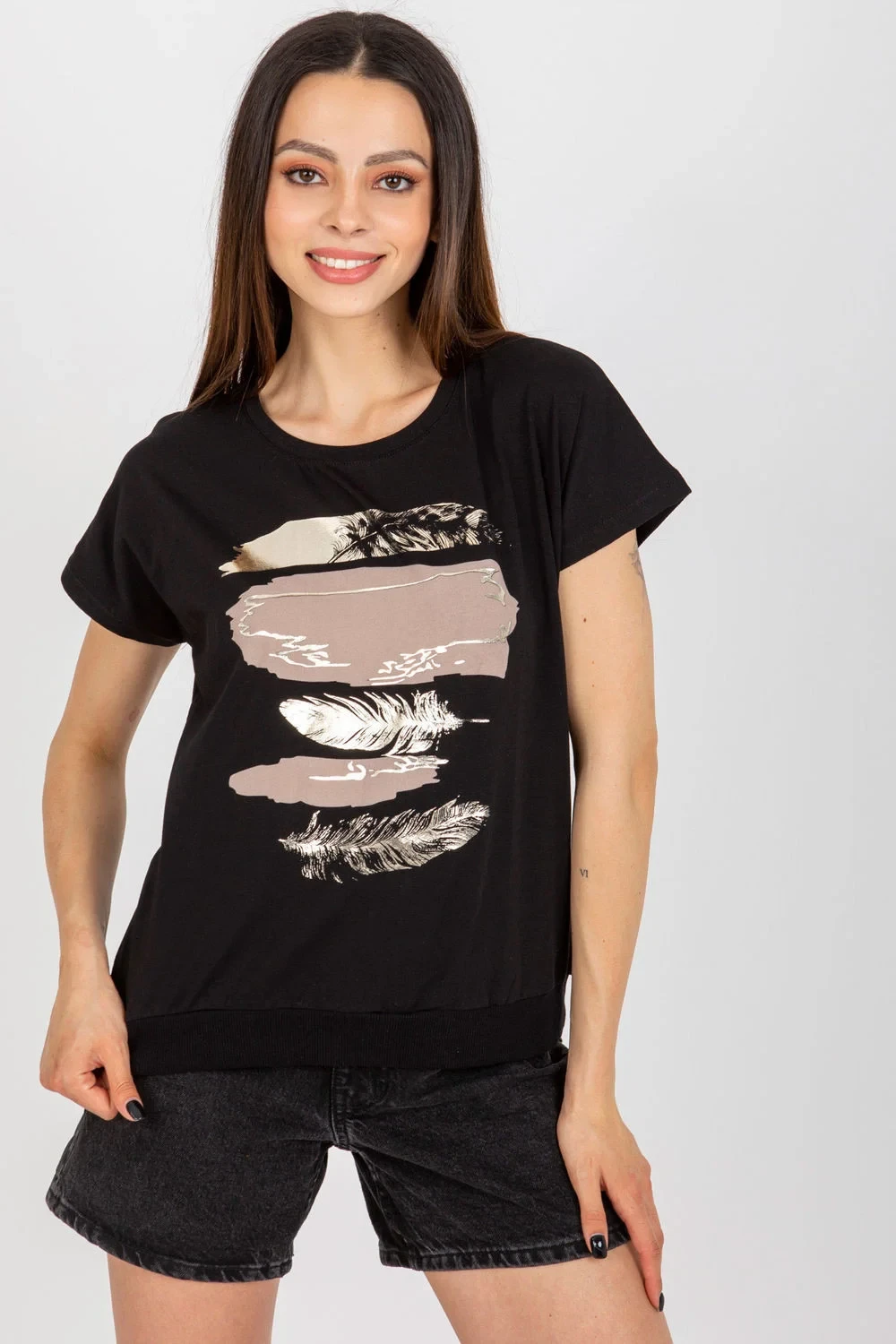 Bavlněná halenka s krátkými rukávy a kulatým výstřihem. Dekorativní potisk na přední straně.
