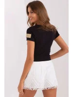 Krátká halenka z žebrovaného materiálu s krátkými rukávy a kulatým výstřihem. Krajková vsadka na předním lemu.