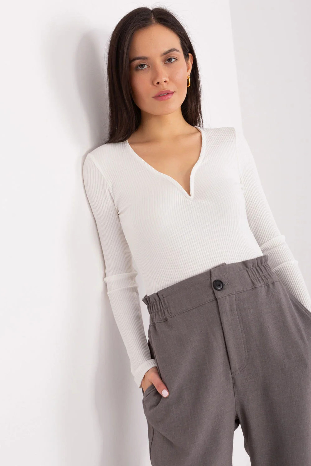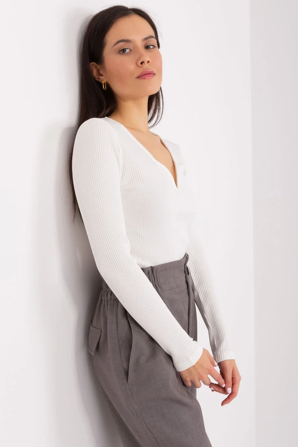 Tato každodenní halenka je ideální volbou pro mnoho příležitostí. Její vypasovaný střih zvýrazní vaši siluetu a zároveň se pohodlně nosí. Blůza je vyrobena ze vzdušné bavlny a poskytuje celodenní pohodlí. Má standardní délku a dlouhé rukávy, takže je vhodná pro různá roční období. Srdíčkový výstřih jí dodává jemný půvab, zatímco žebrovaná tkanina jí dodává zajímavý vzhled. Je skvělou volbou pro každodenní běžné nošení.