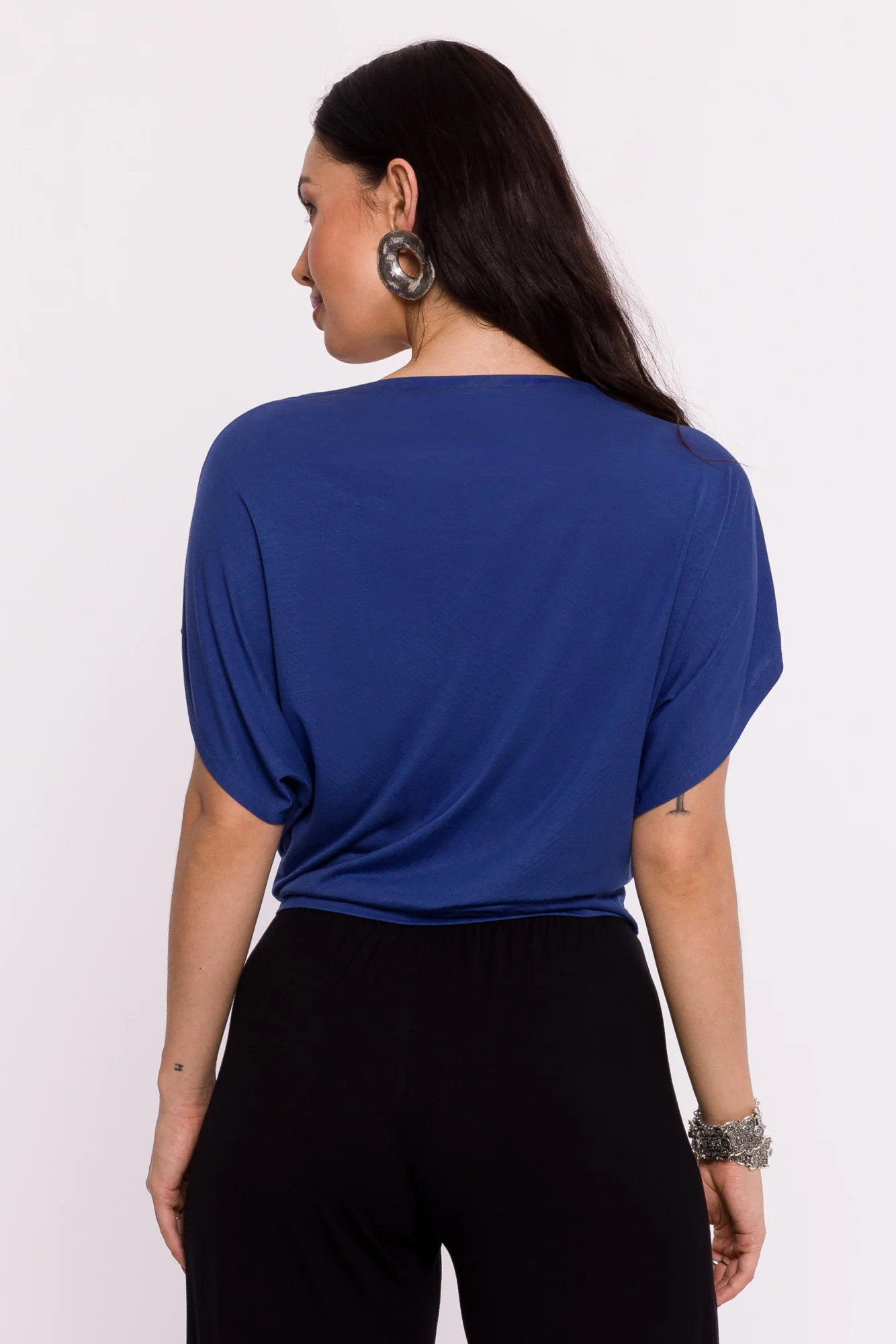 Tato halenka z vysoce kvalitního viskózového úpletu je esencí elegance a pohodlí. Měkký materiál dokonale obepíná tělo a zároveň poskytuje výjimečný komfort při nošení. Díky výrazným rysům je tento model velmi originální a nápaditý, ideální pro nejrůznější příležitosti. Výstřih halenky jemně spadá na ramena, čímž vytváří jemný, smyslný efekt. Je ideální pro ženy, které ocení jemnost a stylovou nonšalanci. Krátké netopýří rukávy dodávají lehkost a jemnost a celkovému vzhledu dodávají módní nádech. Jedním z nejvýraznějších prvků této halenky je nařasený spodní lem. Tento detailní doplněk nejenže dodává halence jedinečný vzhled, ale také jemně tvaruje siluetu a dodává jí lehkost a jemnost. Plisování je módním akcentem i praktickým řešením, které dodává halence další půvab. Stojí za zmínku, že tato halenka byla navržena a vyrobena v Polsku, což je zárukou vysoké kvality zpracování a závazku k jedinečnému designu. Výběrem této halenky investujete nejen do pohodlí a stylu, ale také podpoříte domácí módní produkci. Objevte nový rozměr elegance s touto pletenou halenkou, která je spojením polského designu a světové úrovně.
