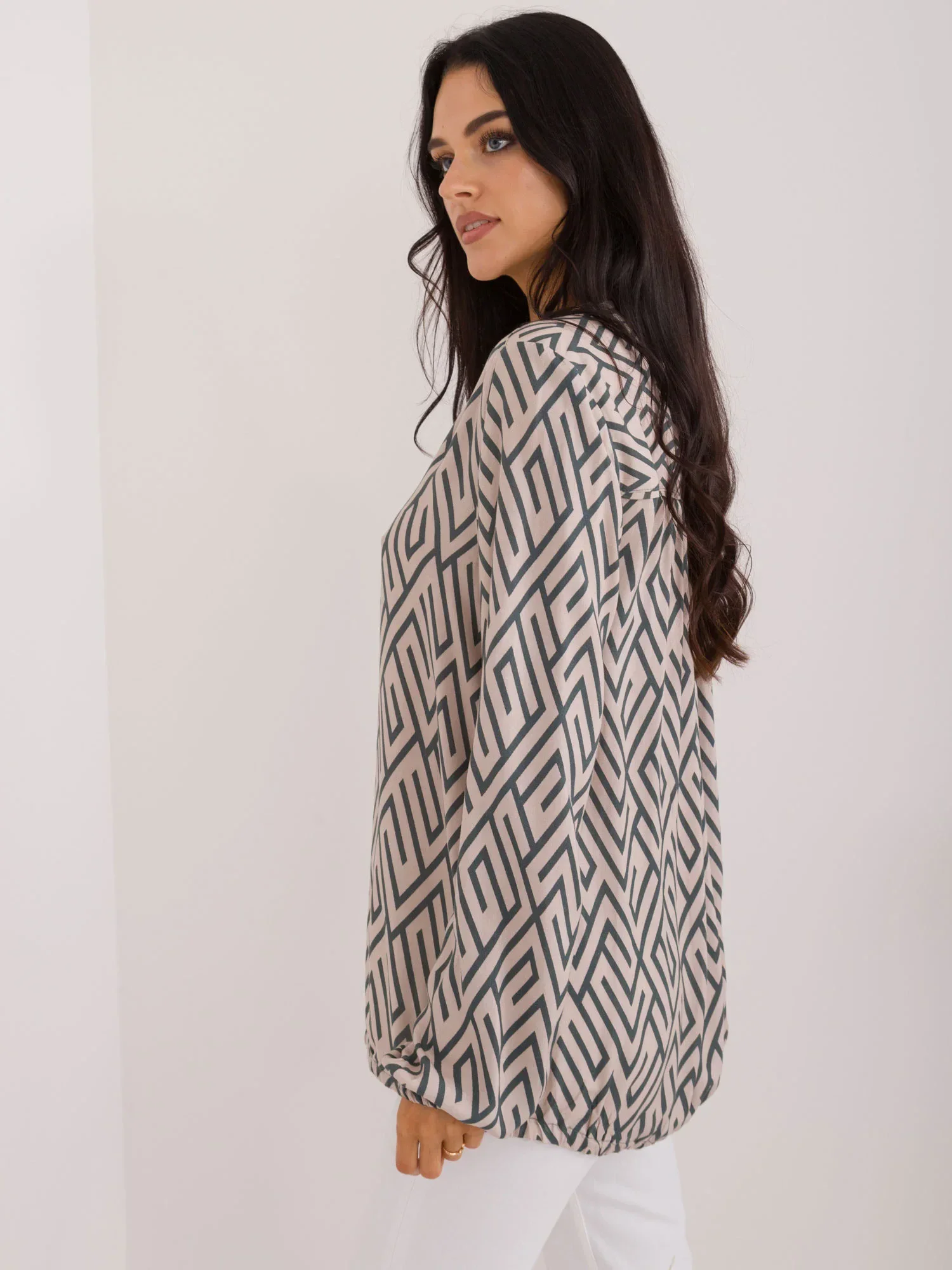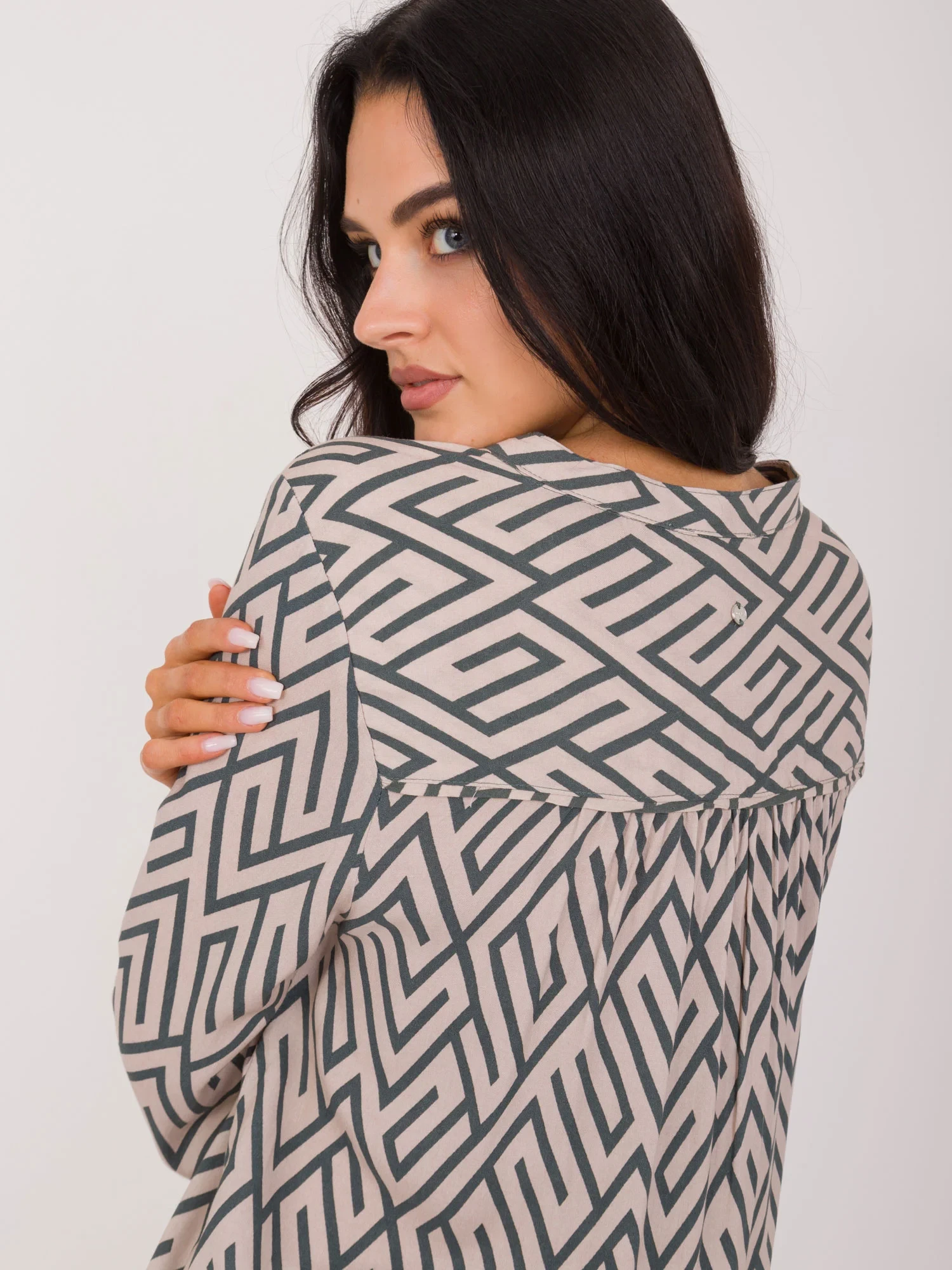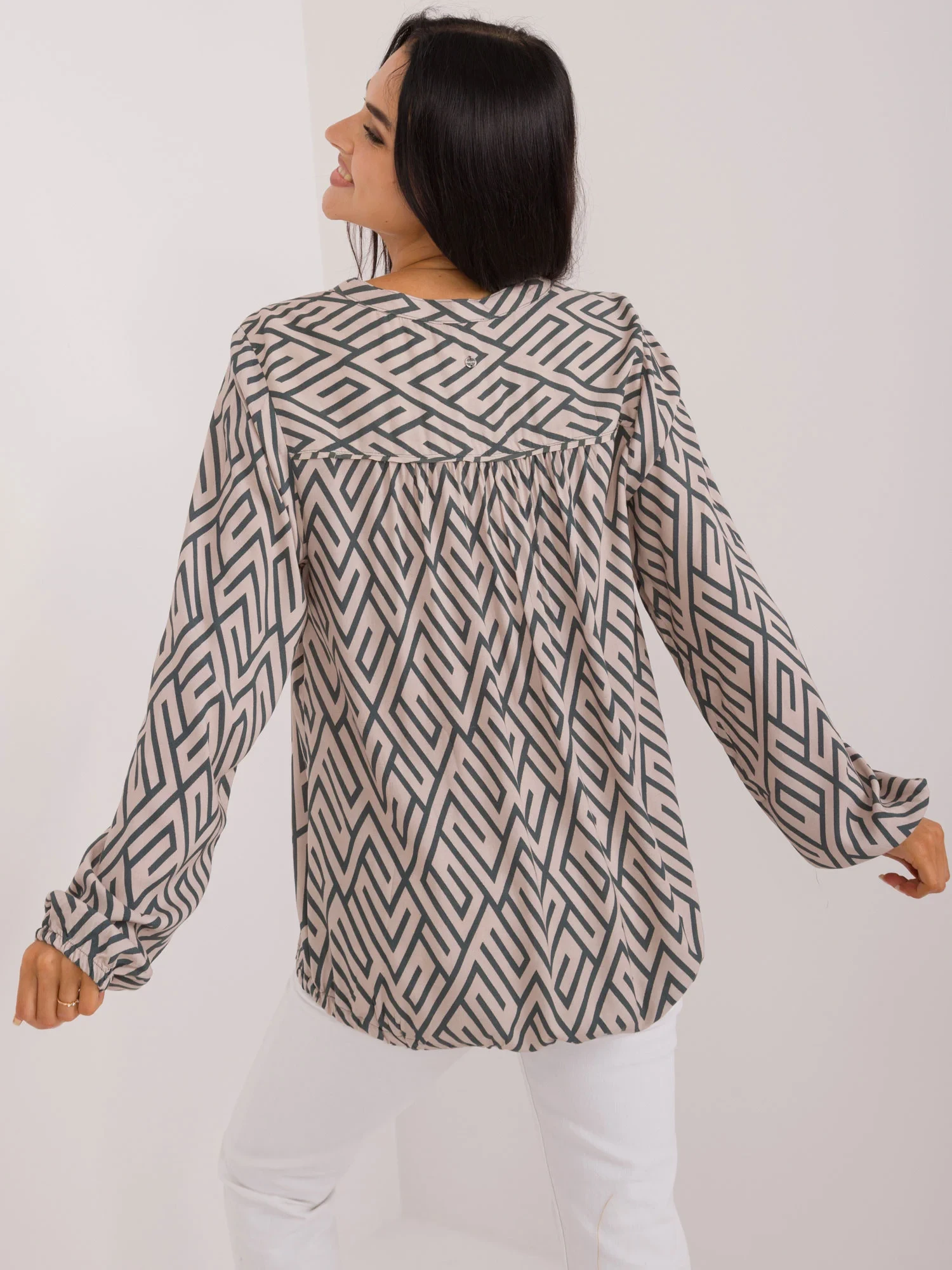 Rozměry halenky velikosti S měřené na plocho: šířka v podpaží - 54 cm, délka rukávu - 65 cm, celková délka - 73 cm.