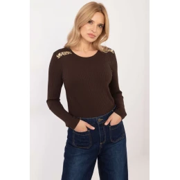 Přizpůsobený top z pruhované látky, ideální na každý den a do práce, kombinující eleganci s moderním stylem. Vyrobený z vysoce kvalitní směsi bavlny a elastanu, skvěle padne na postavě, poskytující pohodlí při nošení. Top má standardní délku, dlouhý rukáv a klasický kulatý výstřih. Na ramenou se nachází efektní zvířecí motiv, který celku dodává výraznosti a charakteru. Navíc zdobený knoflíky na ramenou, přináší jemný, dekorativní akcent. Bez zapínání, model je pohodlný a snadno se nosí, skvěle kombinující elegantní a casual styl.
