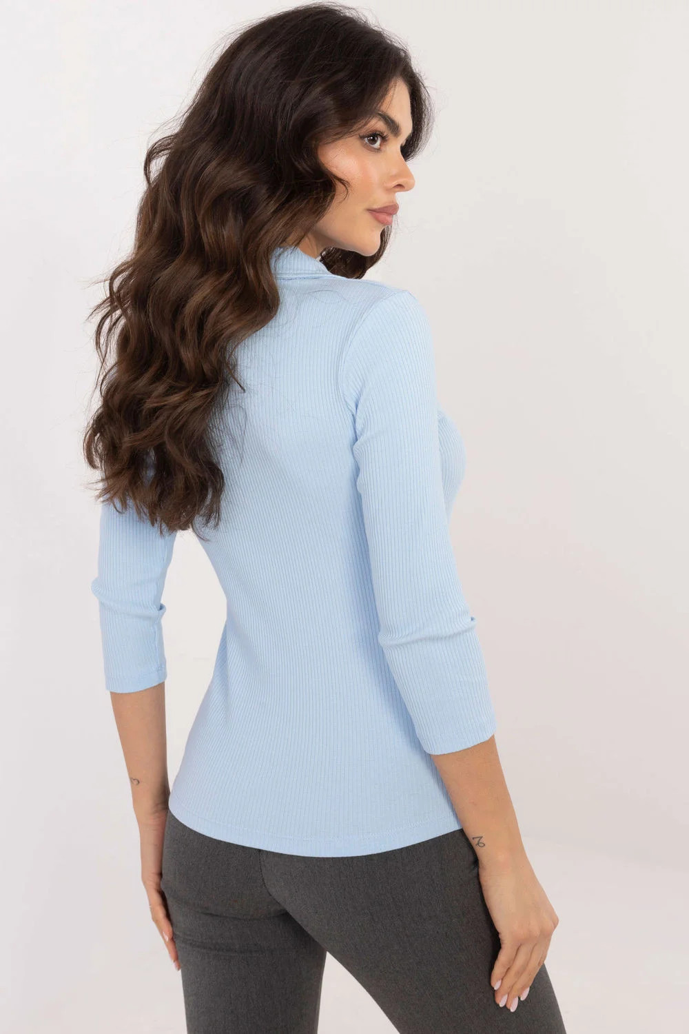 Košile pro ženy v casual stylu, ideální na každý den a do práce. Vyrobena z příjemného na dotek pruhovaného materiálu, kombinující přírodní bavlnu s elastanem, co zajišťuje pohodlí a volnost pohybu po celý den. Standardní délka modelu s rukávem 3/4 je vhodná pro různé styly, jak s džíny, tak s elegantními kalhotami. Košile má klasický límec a decentní zapínání na tři knoflíky vpředu, co ji dodává šarmu. Dalším akcentem je nášivka umístěná vpředu košile, zdůrazňující její jedinečný charakter. Hladký vzor a casual styl dělají z této košile skvělou volbu pro každodenní nošení.