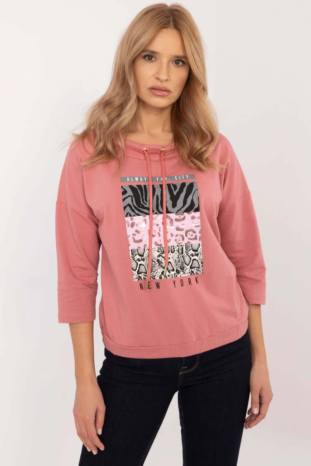 Každodenní košile v casual stylu, ideální pro volné, každodenní outfit. Vyrobená z příjemné bavlny s přídavkem elastanu, poskytuje pohodlí a jemnou pružnost, ideální na aktivní dny. Košile s standardní délkou a 3/4 rukávy je praktickou volbou na každé roční období. Přední část zdobí stylový potisk, který jí dodává jedinečný charakter a módní akcent. Kulatý výstřih byl obohacen o šňůrky ke snadnému uvázání, které plní jak dekorativní, tak praktickou funkci, umožňují lehkou personalizaci outfitu. Je to ideální kousek oblečení pro ženy, které si cení volnosti a stylu ve svém každodenním oblékání.