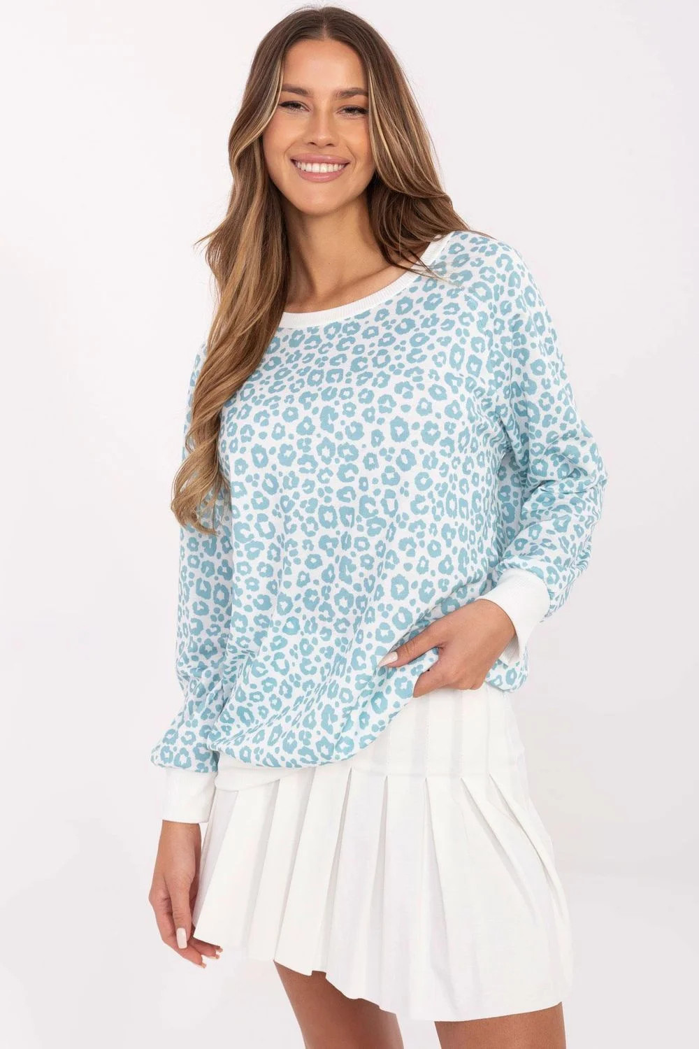 Casualní dámský top nasazovaný přes hlavu, ideální na každý den. Vyrobený z lehkého a příjemného materiálu, poskytuje pohodlí po celý den. Dominující vzor v živočišném motivu s puntíky jí dodává módní a výrazný charakter, skvěle zapadající do nejnovějších trendů. Klasický, kulatý výstřih a dlouhé rukávy dělají z topu skvělou volbu jak pro každodenní, tak i pro stylové kombinace. Standardní délka umožňuje snadné sladění s různými kousky oblečení, jako jsou džíny, sukně nebo elegantní kalhoty. Ideální volba pro ženy ocení pohodlí a stylový vzhled.