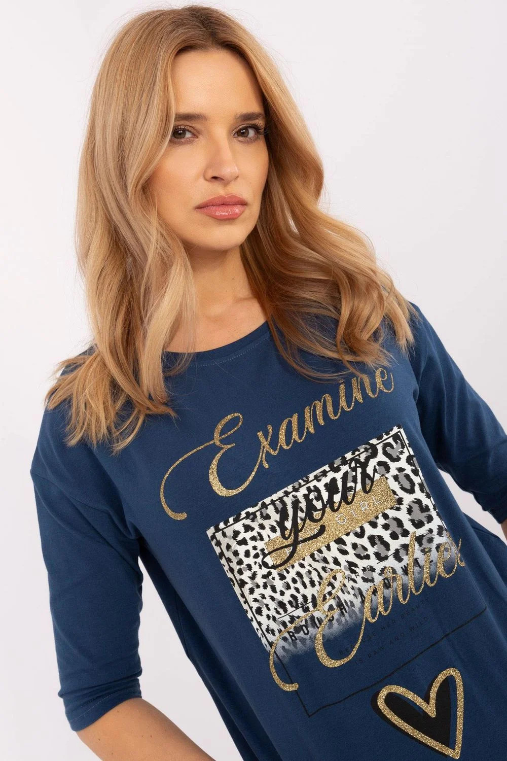 Stylový každodenní top s standardní délkou, vyrobený z měkké bavlny s přídavkem elastanu, co zajišťuje pohodlí a ideální přizpůsobení. Model s 3/4 rukávem a kulatým výstřihem je univerzálním návrhem na každou příležitost. Dominantní vzor spojuje potisk s motivem zvířecího vzoru vpředu, dodávající topu módní a výrazný charakter. Skvěle se hodí k ležérním stylizacím, skvěle ladí jak s džíny, tak s sukněmi nebo elegantními kalhotami.
