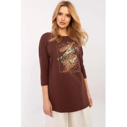 Elegantní blůza s prodlouženým střihem, ideální na každý den. Vyrobená z vysoké kvality bavlny s přídavkem elastanu, poskytuje pohodlí a volnost pohybu. Model s delší délkou, s 3/4 rukávem a kulatým výstřihem, skvěle se hodí do různých stylizací. Dominantní vzor s motivem zvířat na přední straně jí dodává moderní, výrazný charakter. Skvěle se hodí k legínám, džínům nebo přiléhavým kalhotám, ideální pro ženy, které oceňují pohodlí a styl.