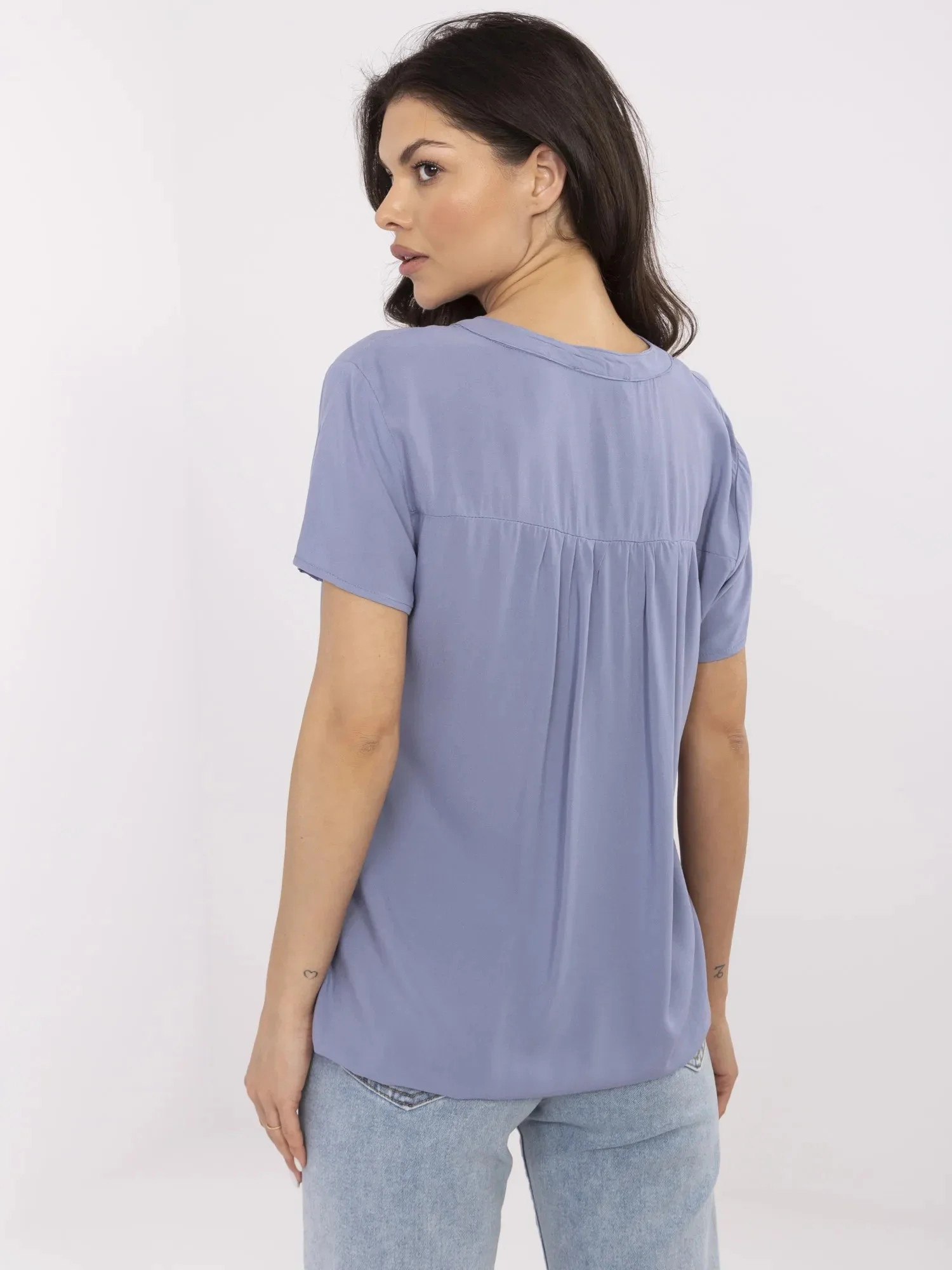 Wymiary bluzki w rozmiarze S mierzone na płasko: szerokość pod pachami - 54 cm, długość rękawa - 17 cm, szerokość w biodrach - 44 cm, długość całkowita - 73 cm.