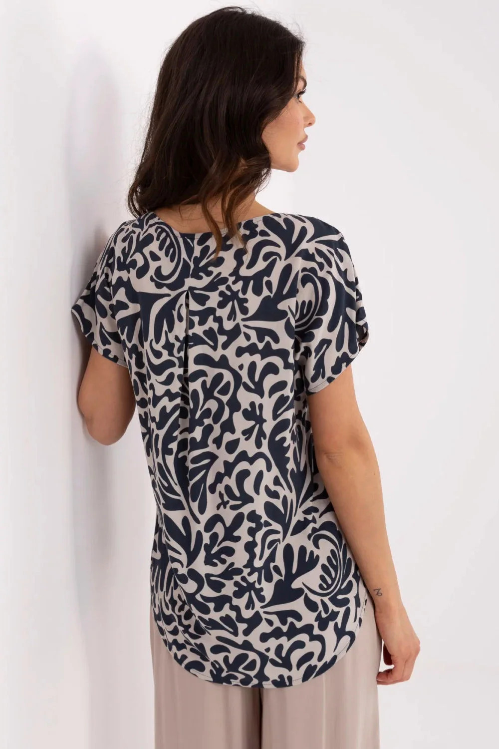 Dámská volnější blůza je skvělým návrhem na každý den, spojující pohodlí a styl. Vyrobená z přírodní viskózy, je měkká, prodyšná a šetrná k pokožce, poskytující pohodlí po celý den. Blůza má standardní délku, krátký rukáv a výstřih do V, což z ní činí vhodný doplněk k mnoha každodenním stylům. Bez zapínání, jednoduchý, ale módní střih, je ideální volbou k džínům, kraťasům nebo sukním. Co je důležité, výrobek patří do kategorie ekologického oblečení, což znamená, že tím, že se staráte o svůj módní vzhled, podporujete také ochranu životního prostředí.