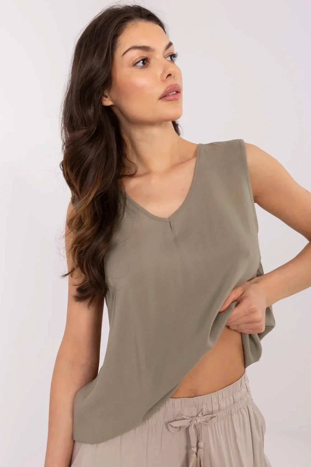 Dámská volná blůza je univerzální a pohodlná volba na každý den, která skvěle zapadá do volného stylu. Vyrobená z měkké a prodyšné viskózy poskytuje pohodlí po celý den, zachovává lehkost a přirozený vzhled. Blůza má standardní délku, kulatý výstřih a je bez rukávů, což z ní činí ideální volbu na teplé dny. Hladký materiál v jednobarevném provedení dělá blůzu mimořádně všestrannou a snadnou k doplnění různými kousky oblečení. Skvěle ladí s džínami, kraťasy nebo sukněmi, a je skvělým základem pro každodenní pohodlné outfity.