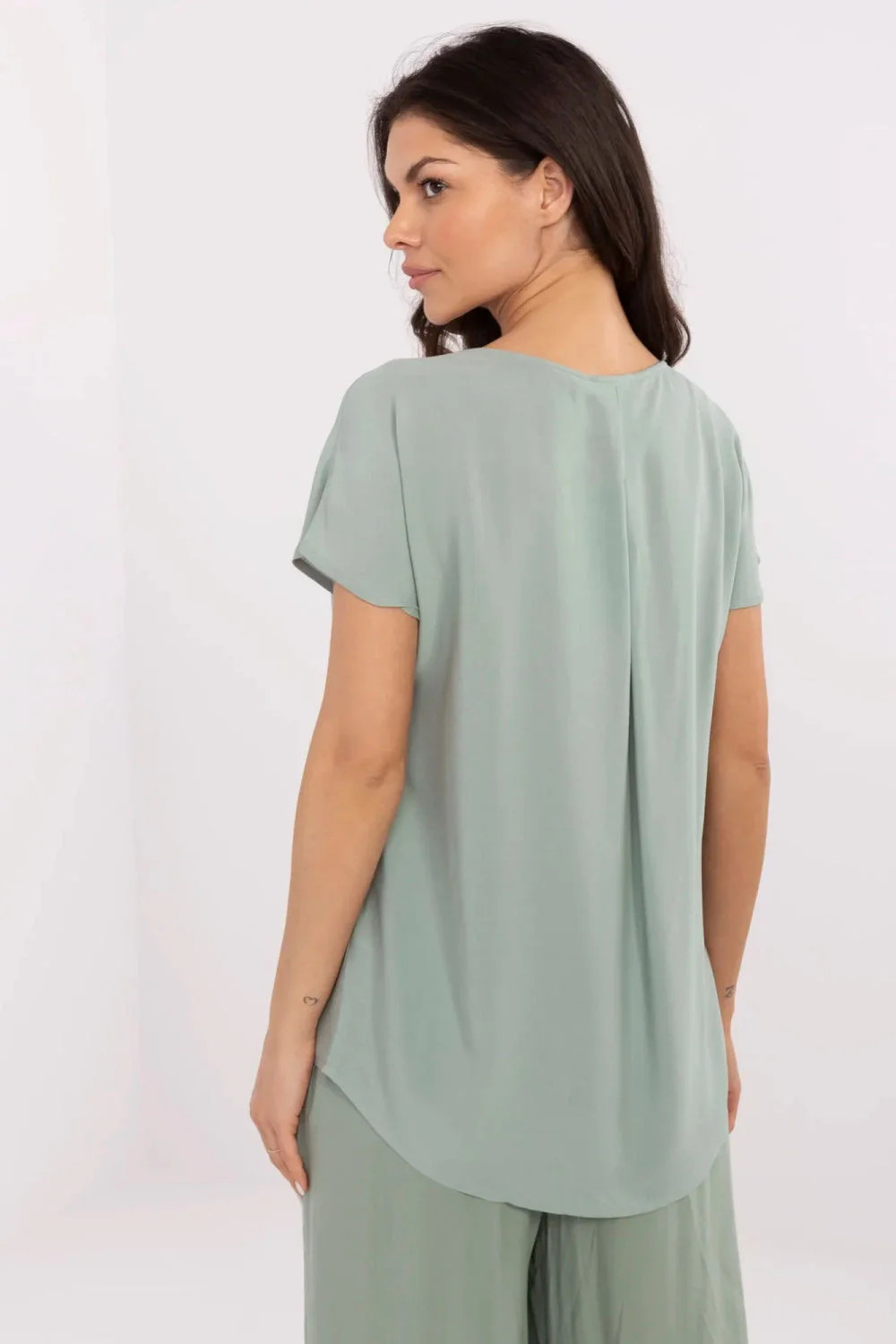 Lehký a pohodlný top s casual charakterem, ideální na každodenní nošení. Vyrobený z prodyšné a měkké viskózy, poskytuje pohodlí po celý den, i v teplejších dnech. Model s standardní délkou, s krátkým rukávem a ženským výstřihem do šípku, jemně zdůrazňuje postavu a hodí se k mnoha stylizacím, jak s kalhotami, tak s sukněmi. Hladký materiál jí dodává univerzální charakter, který lze snadno doplnit oblíbenými doplňky. Je to ideální základ pro každodenní outfit jednoduchý, stylový a pohodlný.