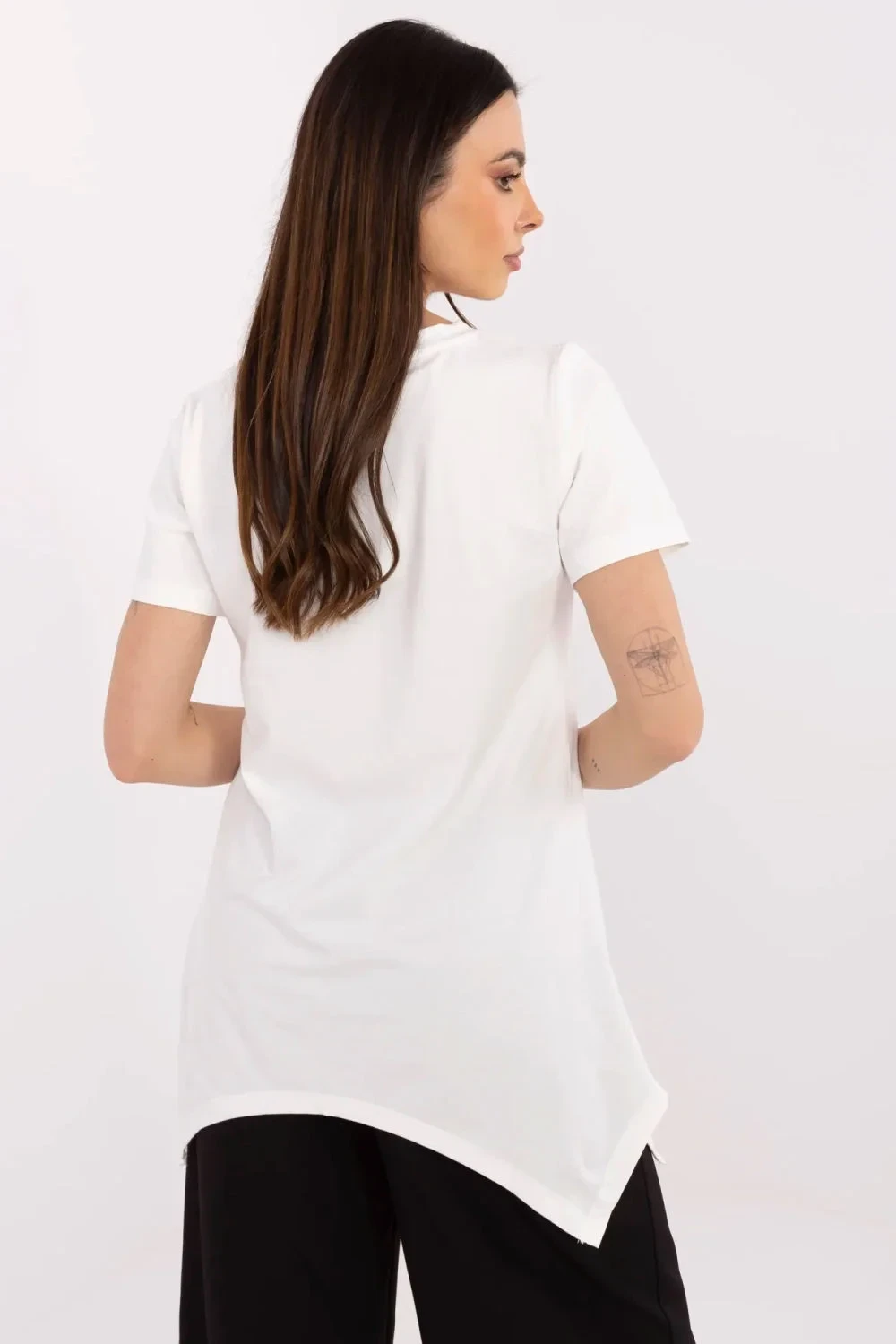 Volný dámský tričko ideální na každý den, kombinující pohodlí s moderním vzhledem. Vyrobené z vysoké kvality směsi bavlny a elastanu, poskytuje pohodlí a ideální přizpůsobení postavě. Standardní délka, krátký rukáv a klasický kulatý výstřih. Bez zapínání, což zajišťuje pohodlné nasazování. Dominantní vzor a potisk v zvířecím motivu přitahují pozornost, a aplikace z jehlic a zirkonů dodávají tričku výjimečný lesk a originální charakter. Skvělý návrh pro ženy, které ocení pohodlí a moderní, neotřelý styl na každý den.