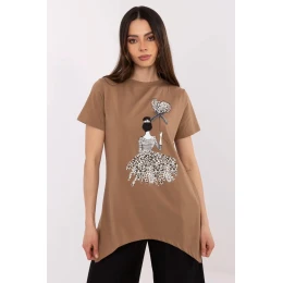 Casual dámský top ideální na každý den, kombinující pohodlí s trendy vzhledem. Vyrobený z vysoce kvalitní směsi bavlny a elastanu, poskytuje pohodlí a dokonalé přizpůsobení postavě. Standardní délka, krátký rukáv a klasický kulatý výstřih. Bez zapínání, což zajišťuje pohodlné oblékání. Dominantní zvířecí motiv a potisk přitahují pozornost, a aplikace z jehlic a zirkonů dodávají topu výjimečný lesk a originální charakter. Skvělý návrh pro ženy, které ocení pohodlí a trendy, neokázalý styl na každý den.