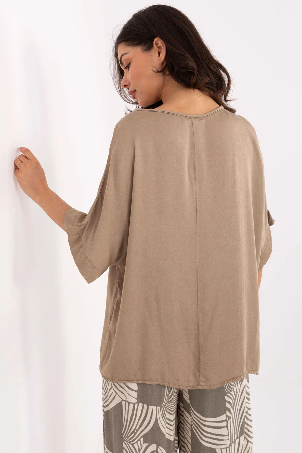 Každodenní volná košile je univerzální nabídka pro mnoho stylů. Vyrobená z měkké a prodyšné viskózy zaručuje pohodlí po celý den. Hladká tkanina jí dodává klasický a nadčasový charakter, ideální pro každodenní nošení do práce, na procházku nebo setkání s přáteli. Model s standardní délkou, s 3/4 rukávem a šikmým výstřihem, který decentně zdůrazňuje linii krku. Jednoduchý, ale zároveň elegantní vypadá skvěle jak s džínami, tak s sukní.