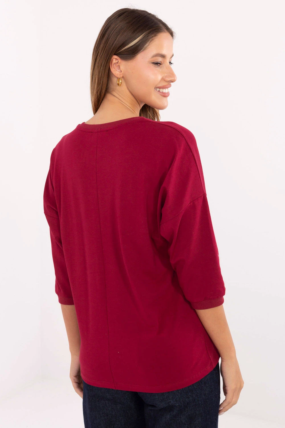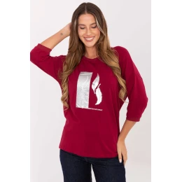 Casual dámský top s metalizovaným potiskem na přední straně je ideální volbou na každý den, která dodává stylingu jemný lesk. Vyrobený z měkké bavlny s přídavkem elastanu poskytuje pohodlí a volnost pohybu, standardní délka umožňuje snadné sladění s oblíbenými kalhotami nebo sukní. Model s 3/4 rukávem a klasickým kulatým výstřihem spojuje pohodlí s trendovým akcentem, díky čemuž se skvěle hodí jak do každodenních, tak do trochu volnějších, příležitostných stylizací.