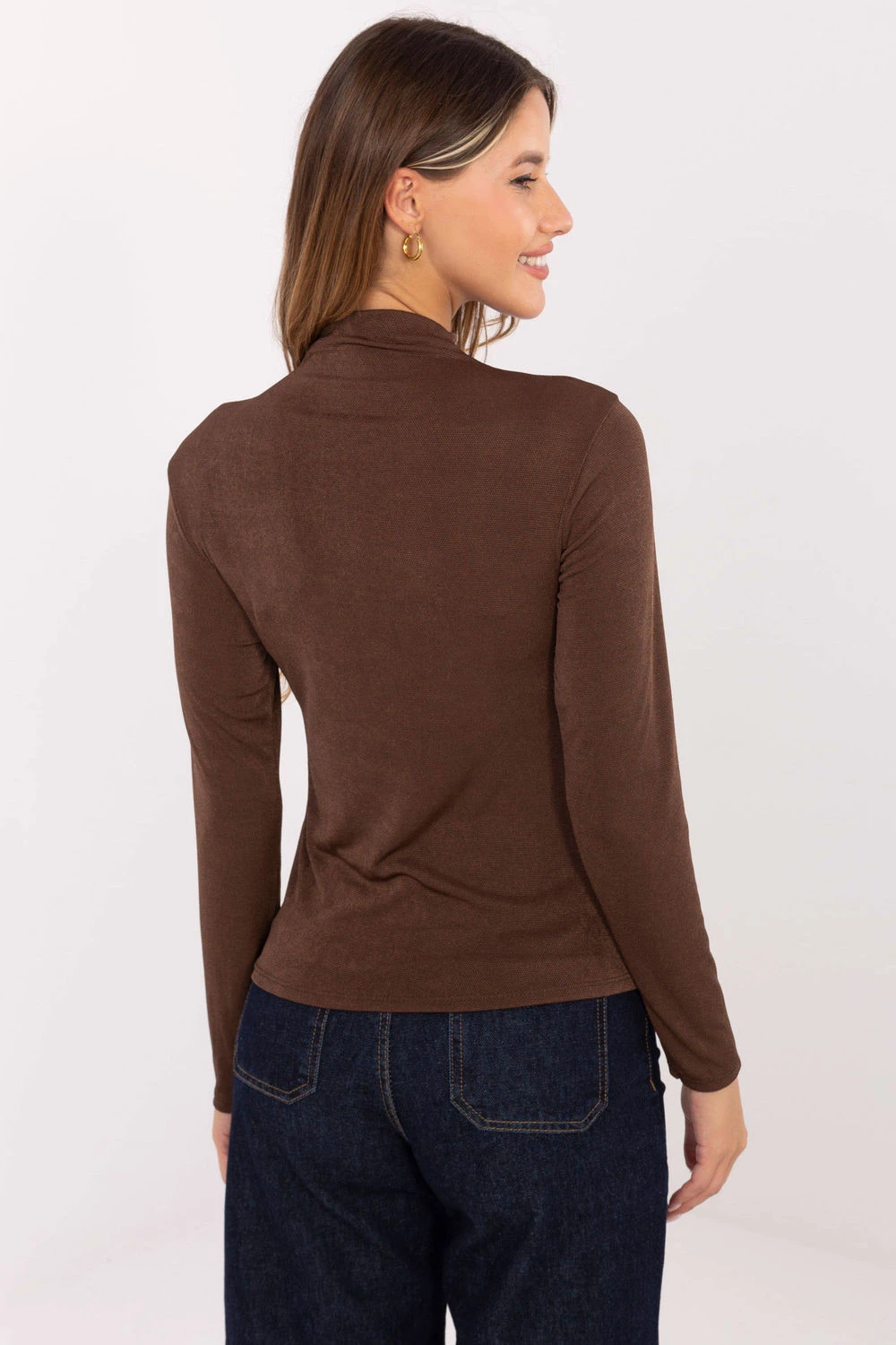 Tato přizpůsobená dámská halenka je elegantní a univerzální volba, ideální jak na každý den, do práce, tak i na slavnostní příležitosti. Model s standardní délkou, dlouhým rukávem a klasickým rolákem zdůrazňuje postavu, zachovává přitom pohodlí nošení. Vyrobená z měkké směsi viskózy a polyesteru, halenka je příjemná na dotek, elastická a snadno se udržuje. Hladký vzor z ní činí velmi univerzální a snadno kombinovatelnou s různými sukněmi, kalhotami nebo elegantními doplňky. Fakt, že nemá zapínání, zajišťuje praktičnost a pohodlí, a klasický, elegantní střih dělá halenku vhodnou pro mnoho stylizací od každodenních po formální.