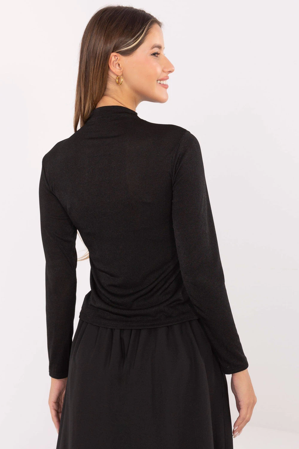Tento přizpůsobený dámský top je elegantní a univerzální volbou, ideální jak do práce, tak na formální události. Model s klasickou délkou, dlouhým rukávem a klasickým polokošilem zdůrazňuje postavu a zároveň je pohodlný. Vyrobený z měkké směsi viskózy a polyesteru, top je příjemný na dotek, elastický a snadno se udržuje. Hladký vzor ho činí velmi univerzálním a snadno kombinovatelným s různými sukněmi, kalhotami nebo elegantními doplňky. Bez zapínání zajišťuje praktičnost a pohodlí, a klasický, elegantní střih z něj dělá vhodný top pro mnoho stylizací od každodenních po formální.