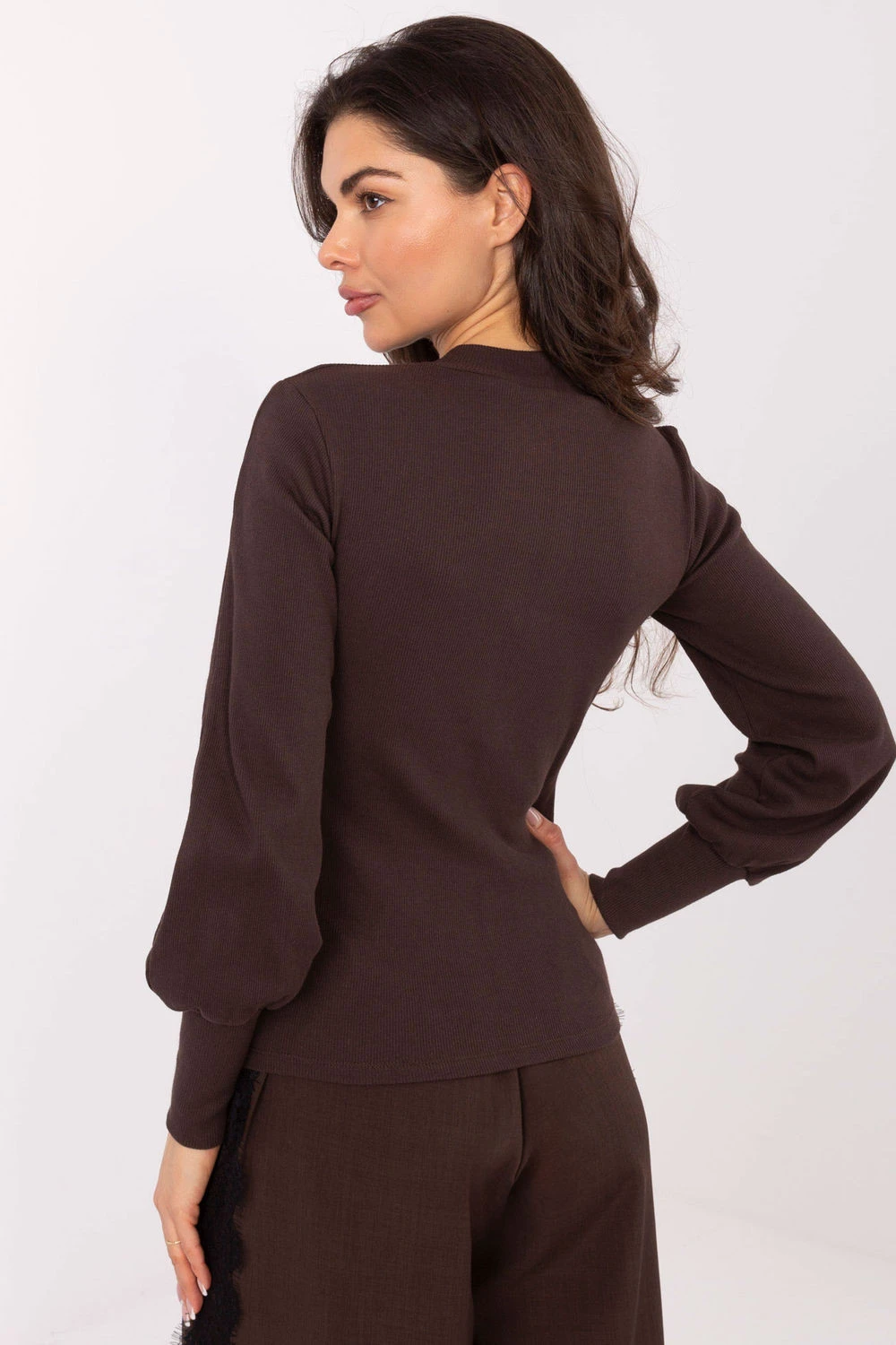 Elegantní a pohodlný top z pruhované látky je klasika, která se hodí do každodenního outfitu. Vyrobený z elastické směsi bavlny a elastanu, skvěle se přizpůsobuje postavě, poskytující pohodlí po celý den. Model má polo rolák, který jemně zdůrazňuje krk a dodává celku elegantní charakter. Dlouhé rukávy s širokým manžetou přidávají topu moderní vzhled a lehkou originalitu. Díky hladké struktuře a standardní délce se top skvěle kombinuje jak s kalhotami, tak s sukní, ideální na každý den, do práce nebo jako základ pod sako. Bez zapínání je velmi praktický a pohodlný k nošení.