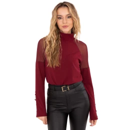 Elegantní blůzka s hladkým dokončením je stylovou volbou ideální na každý den, do práce a na formální události. Vyrobená z vysoce kvalitní směsi polyesteru, viskózy a elastanu, poskytuje pohodlné nošení a skvělé přizpůsobení. Model se vyznačuje decentními síťovanými vložkami na ramenou, které dodávají celku moderní a ženský charakter. Blůzka má standardní délku, dlouhý rukáv a klasický golfový límec, který zdůrazňuje elegantní styl. Dekorativní knoflíky na rukávech představují efektní detail, který modelu dodává výjimečný výraz. Bez zapínání je blůzka pohodlná a snadno se obléká. Jedná se o nadčasovou nabídku pro ženy, které oceňují eleganci, pohodlí a decentní akcenty ve svých každodenních i formálních stylizacích.