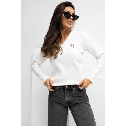 Elegantní dámská halenka s každodenním, ležérním charakterem, ideální na práci, do každodenního nošení nebo víkendové vycházky. Vyrobená z měkké bavlny s přídavkem elastanu, poskytuje pohodlí při nošení a skvělé přizpůsobení. Hladký, pruhovaný materiál jí dodává moderní, decentně elegantní vzhled. Model má standardní délku a dlouhý rukáv, díky čemuž se hodí na každé roční období. Výstřih do V jemně zdůrazňuje linii krku a zúží siluetu. Další výhodou je drobný, ozdobný vyšitý motiv umístěný na úrovni levého prsu, který blůze dodává charakter a výjimečné dokončení. Halenka nemá zapínání, což zaručuje plné pohodlí při nošení a snadnost použití.