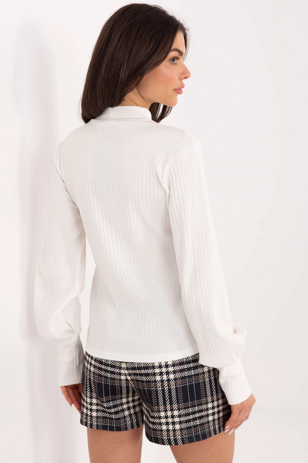 Elegantní každodenní blůzka s volným stylem, ideální jak do práce, tak na každý den. Vyrobená z kombinace bavlny a elastanu, je měkká, pohodlná a skvěle padne. Model standardní délky je vybaven dlouhým rukávem s širokým manžetou, vytvářejícím efekt módního nafouklého rukávu. Jemný polokošile dodává blůzce eleganci a skvěle se osvědčuje v chladnějších dnech. Bez zapínání zajišťuje plný komfort a pohodlí nošení. Skvělý návrh pro ženy, které oceňují kombinaci jednoduchosti, volnosti a elegantních detailů.