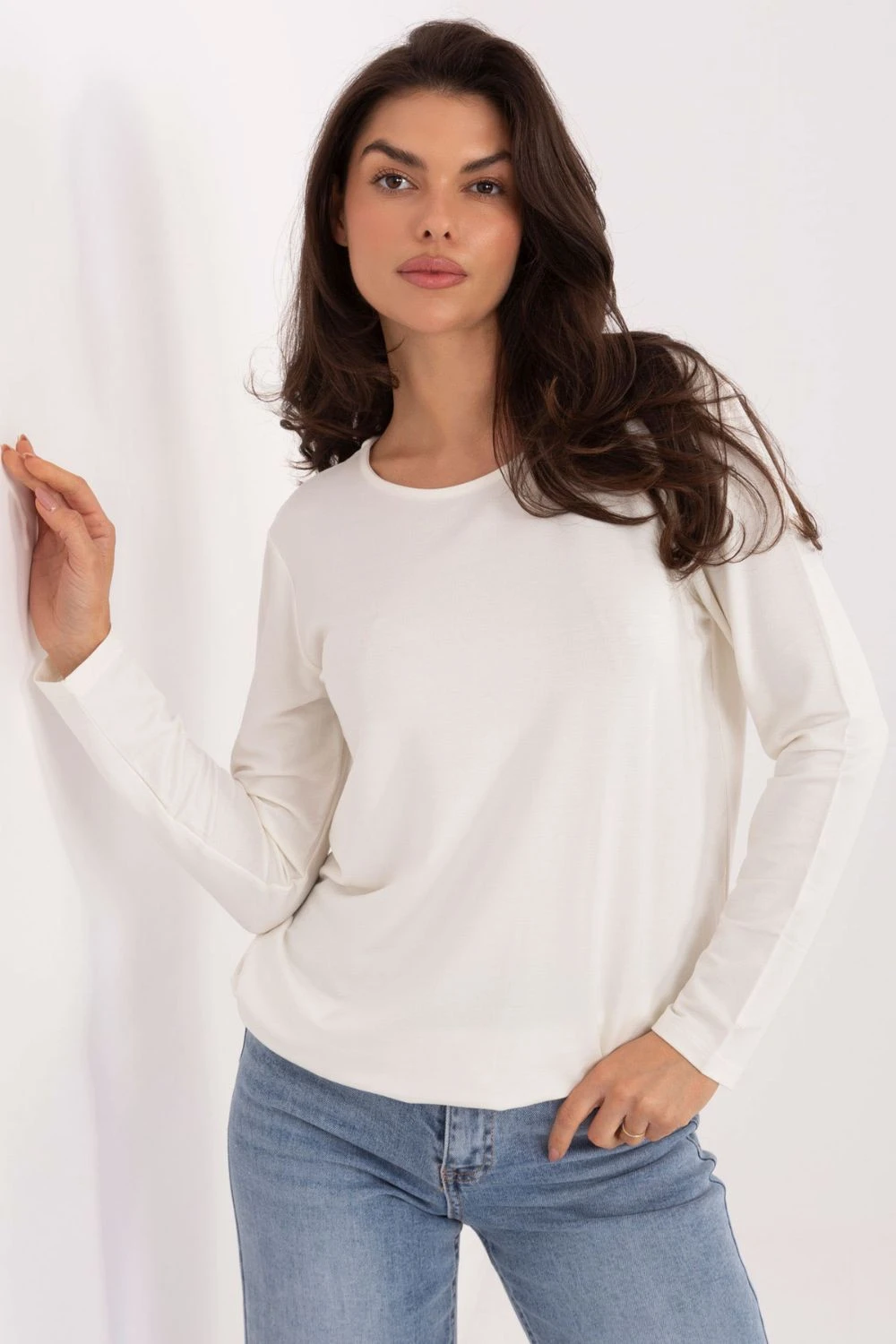 Každodenní košile ve stylu casual je pohodlný a univerzální model, který se skvěle hodí do každodenních outfitů. Vyrobená z příjemného na dotek, prodyšného úpletu z mikro modálu a elastanu, poskytuje měkkost, pružnost a ideální přizpůsobení se postavě. Košile má standardní délku, dlouhý rukáv a kulatý výstřih, což jí dodává klasický, nadčasový charakter. Hladký materiál zdůrazňuje minimalistický styl, díky čemuž se model skvěle doplňuje s džíny, sukněmi nebo látkovými kalhotami. Další výhodou je zakončení elastickou gumičkou na spodním lemu, která jemně zdůrazňuje linii boků a zajišťuje, že se košile dobře nosí, nezkroutí se a zůstane na svém místě po celý den. Model nemá zapínání, pohodlně se obléká přes hlavu. Ideální nabídka na každý den, spojující jednoduchost s výjimečným pohodlím nošení.