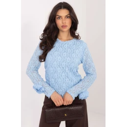 Elegantní, přizpůsobená krajková blůzka je výjimečný model, který spojuje ženskost, jemný šarm a výrazné detaily. Vyrobená z vysoké kvality viskózy s přídavkem elastanu, okouzlí pohodlím, měkkostí a krásnou, pestrou texturou krajky. Model má kulatý výstřih a dlouhé rukávy bez podšívky, díky čemuž je jemný vzor krajky na nich plně viditelný. Rukávy zdobí efektní růže vyrobené ze stejné krajky, vytvářející elegantní a velmi ženský akcent. Tělo blůzky je vybaveno podšívkou, což zajistí pohodlí, estetické uspořádání a plnou volnost nošení. Další rouchy po stranách jemně modelují siluetu, zdůrazňujíci pas a dodávají blůzce rafinovaný charakter. Model nemá zapínání, pohodlně se nasazuje přes hlavu. Tato blůzka je ideálním návrhem na návštěvy, večírky, do práce a všude tam, kde chcete spojit eleganci s výjimečným, propracovaným detailom.