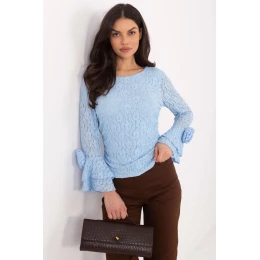 Elegantní krajkový top je stylovým návrhem, který se skvěle hodí jak na speciální příležitosti, tak do každodenního outfitu. Vyrobený z vysoké kvality materiálu z polyesteru a elastanu, zajišťuje pohodlnost nošení a skvělé přizpůsobení postavě. Různorodá struktura materiálu dodává topu výjimečný charakter a jemnou eleganci. Model s krátkou délkou, kulatým výstřihem a bez zapínání působí lehce a moderně. Dlouhé zvonové rukávy jsou zdobeny efektními volány a ozdobným materiálovým kvítkem, které přitahují pozornost a dodávají celku romantický nádech. Přední část topu je podšitá, zatímco rukávy a záda zůstávají jemně průhledné, podtrhující krajkový charakter modelu. Dodatečné rouchy na bocích jemně tvarují postavu. Top se skvěle hodí jako součást elegantního outfitu, na večírek, do práce i do každodenního života, ve spojení s kalhotami s vysokým pasem, sukní nebo elegantními džíny.